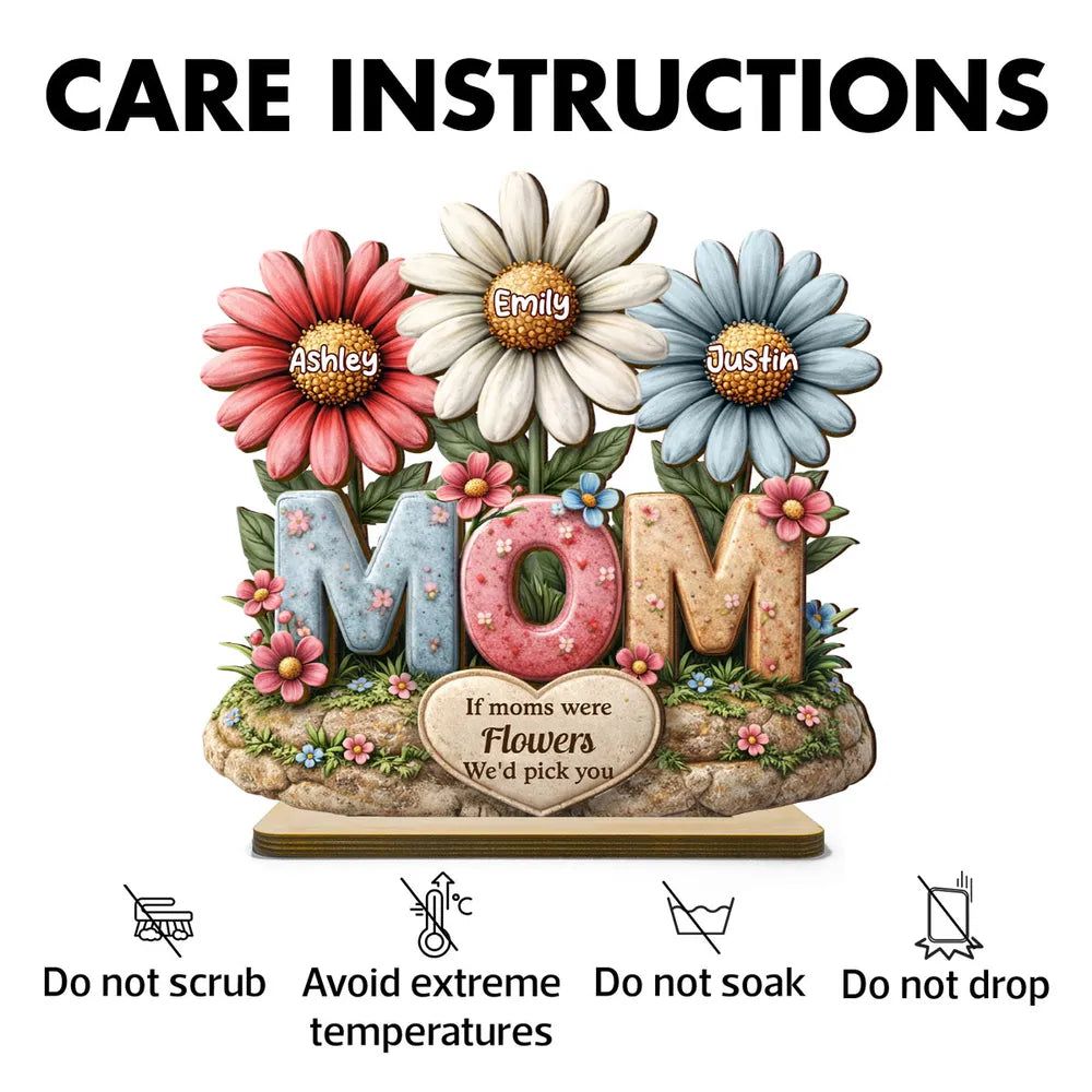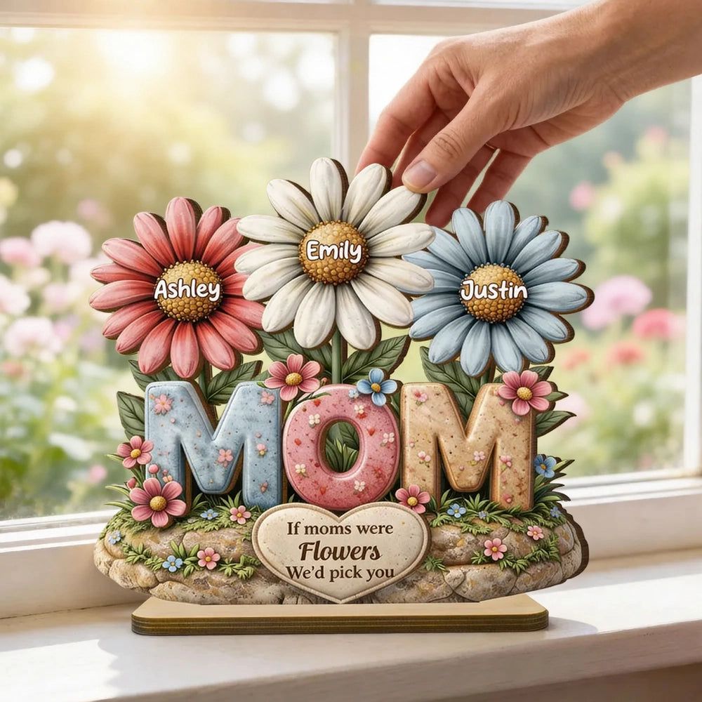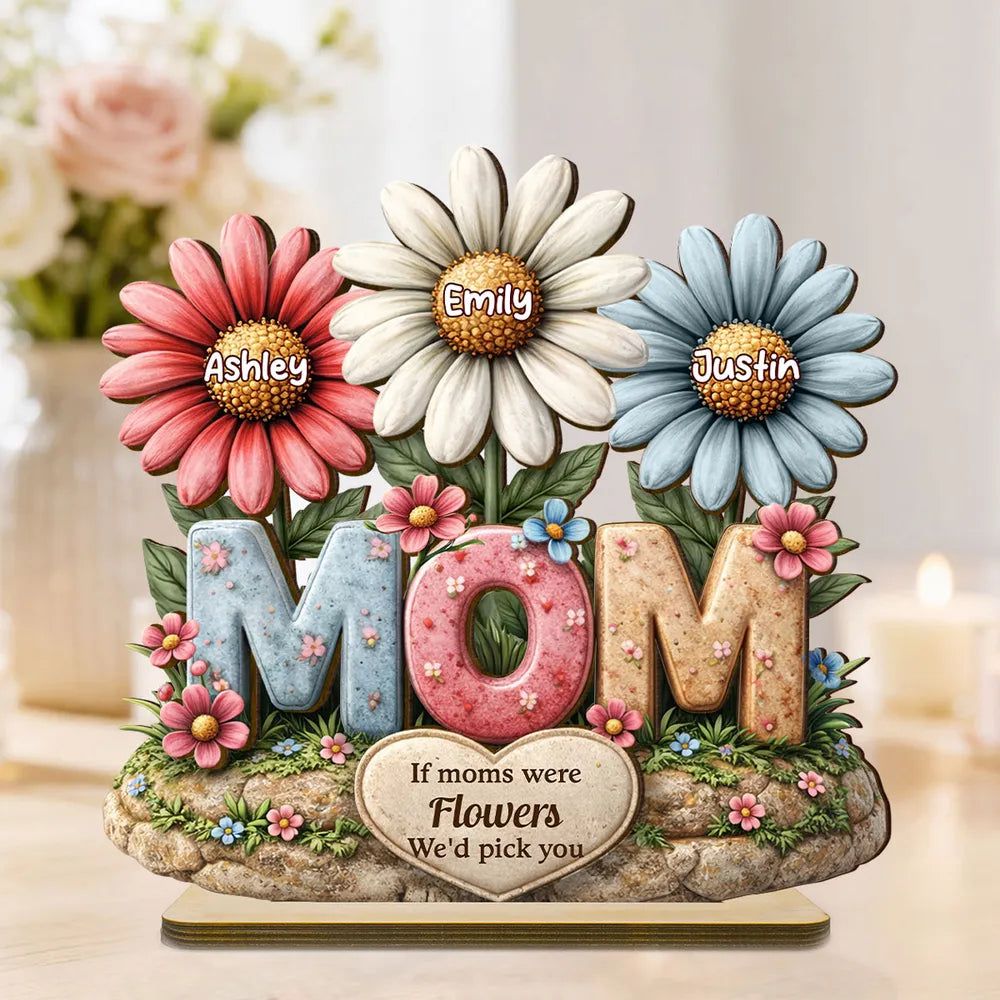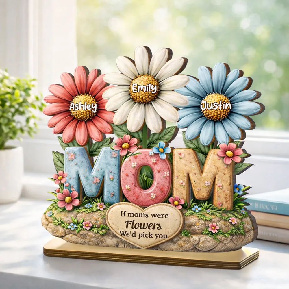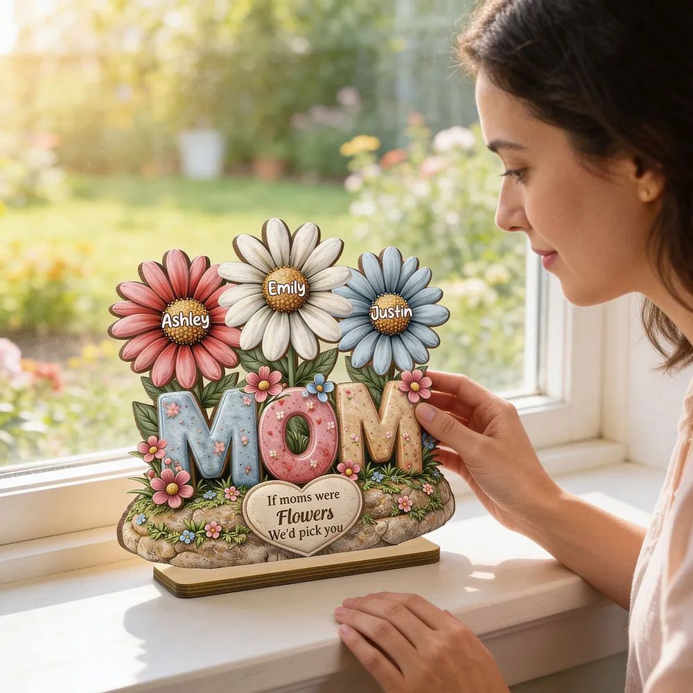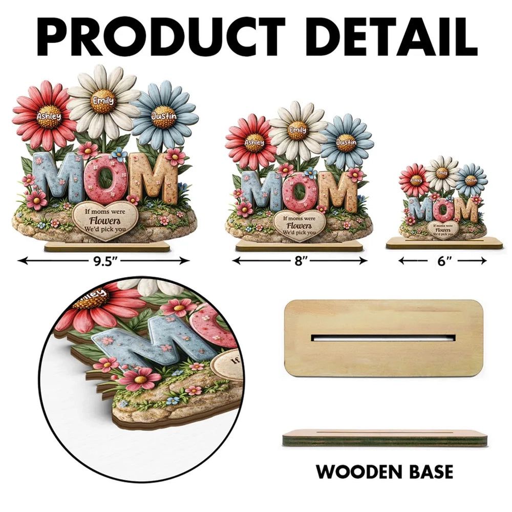 If Moms Were Flowers We'd Pick You 2-Layer Wooden Plaque, Personalized Family Keepsake Gift for Mom, Bright Floral Home Decor