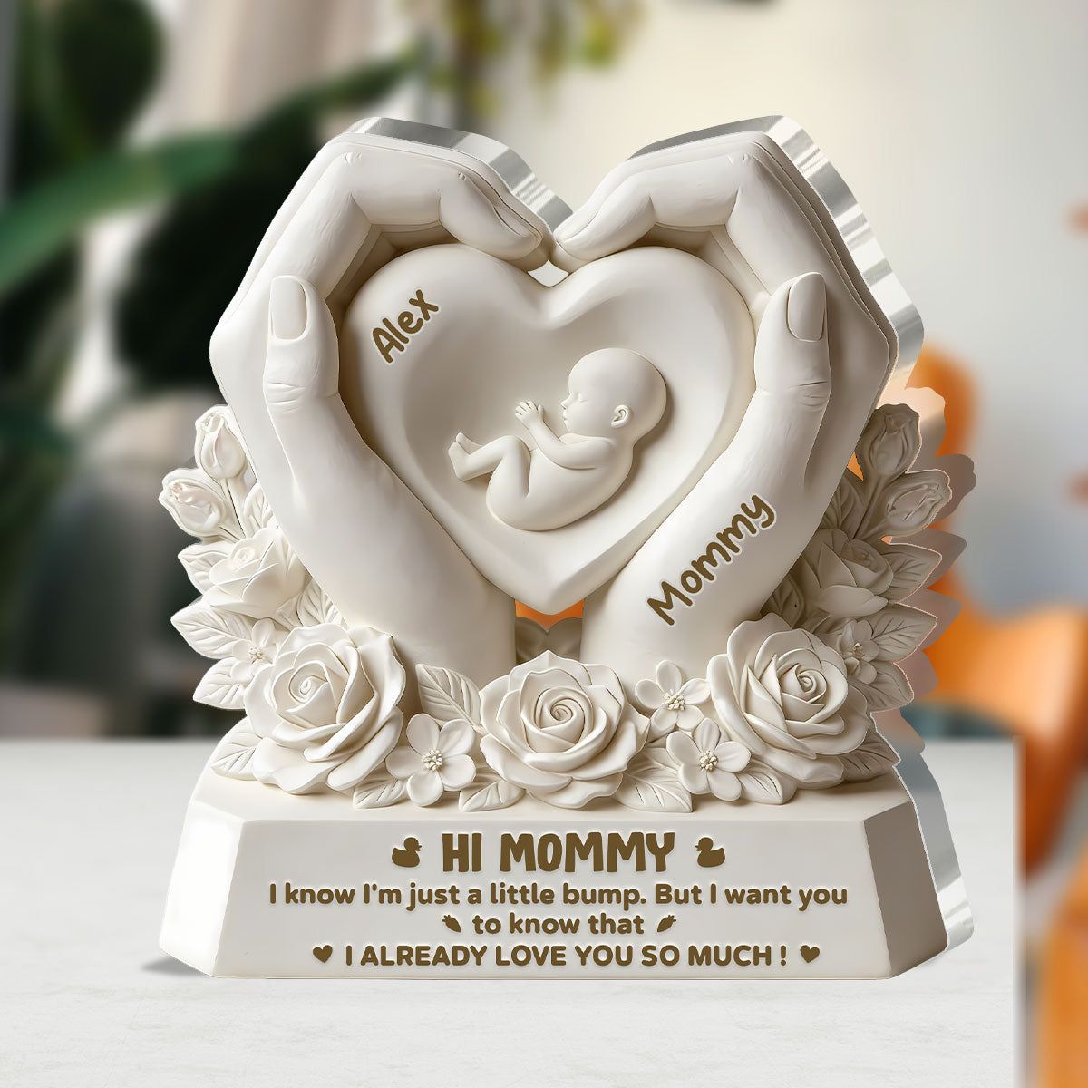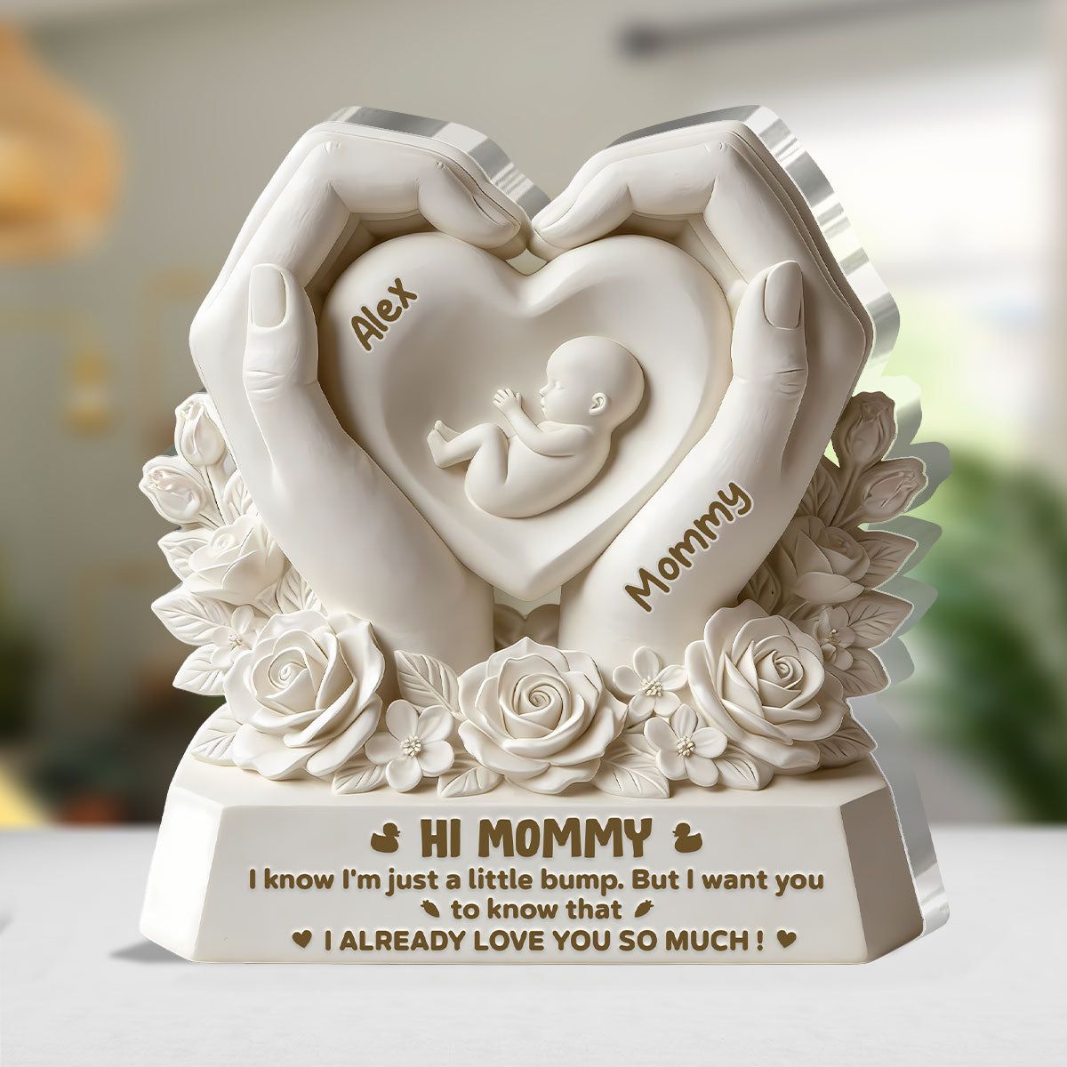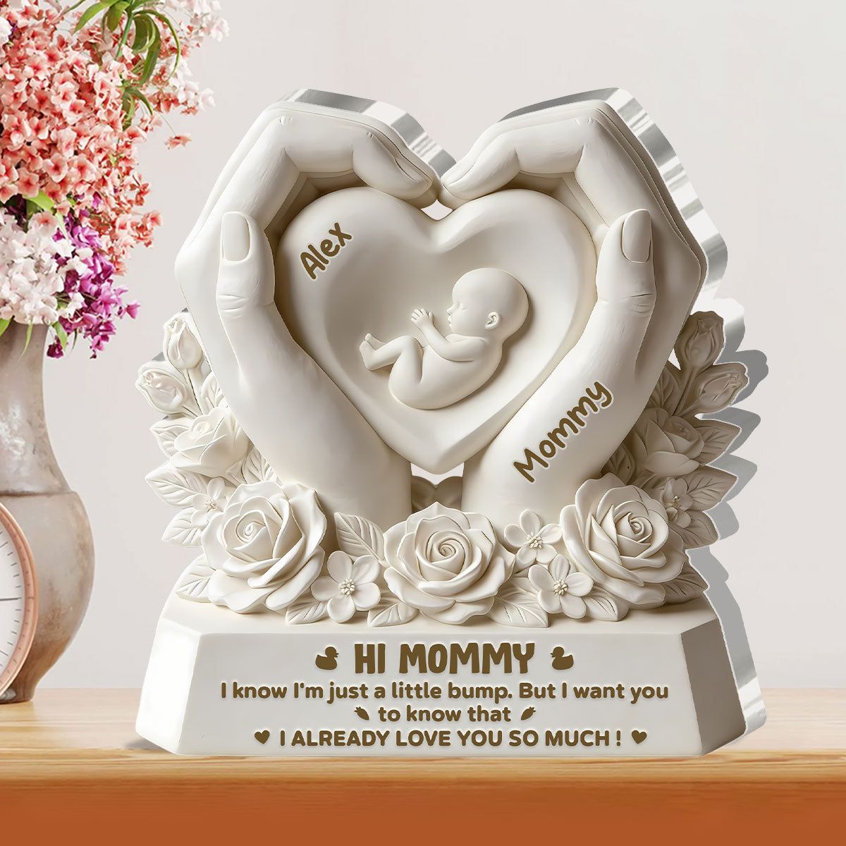 Personalized Hi Mommy Pregnancy Acrylic Plaque | Custom Name Baby Bump & Mommy Keepsake