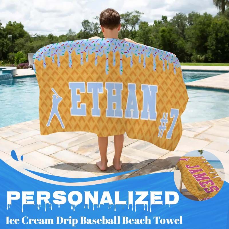 ⚾Personalized Ice Cream Drop Baseball Beach Towel