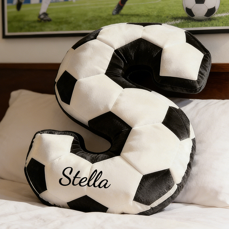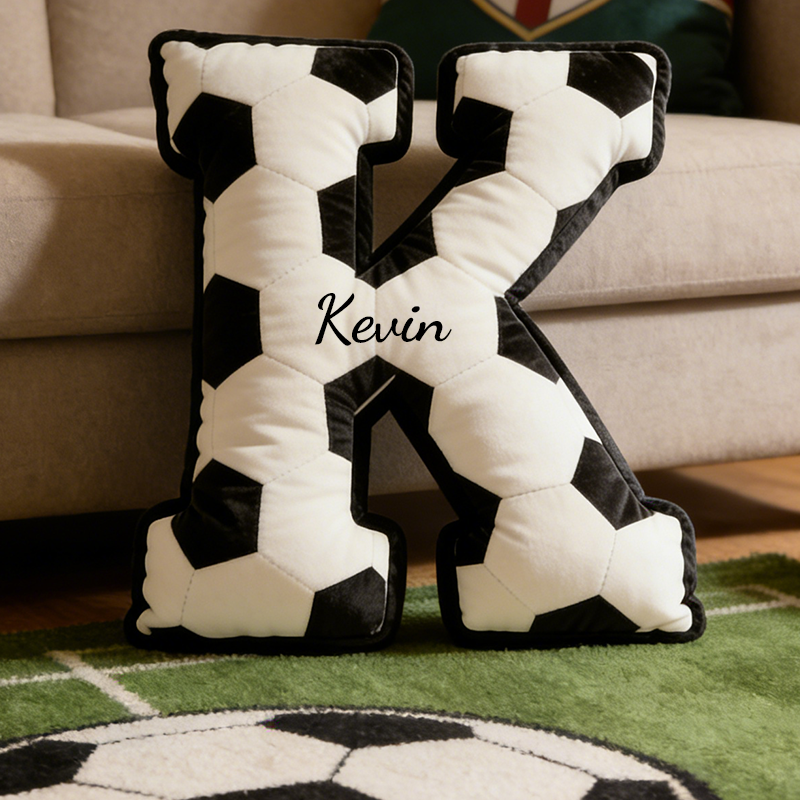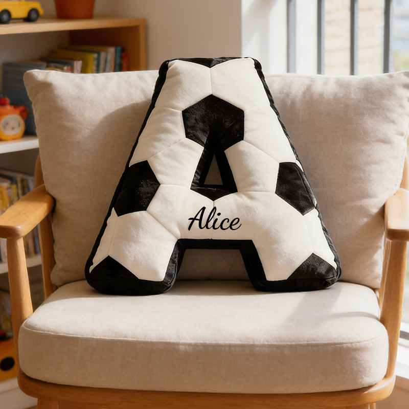 Letter Shape + Soccer Texture Design: Featuring the classic 26‑letter alphabet shape with a black‑and‑white hexagonal patchwork pattern that mirrors a real soccer ball, this design brings “personal identity and soccer passion” to life as a soft, huggable cushion—full of playful charm and athletic spirit.