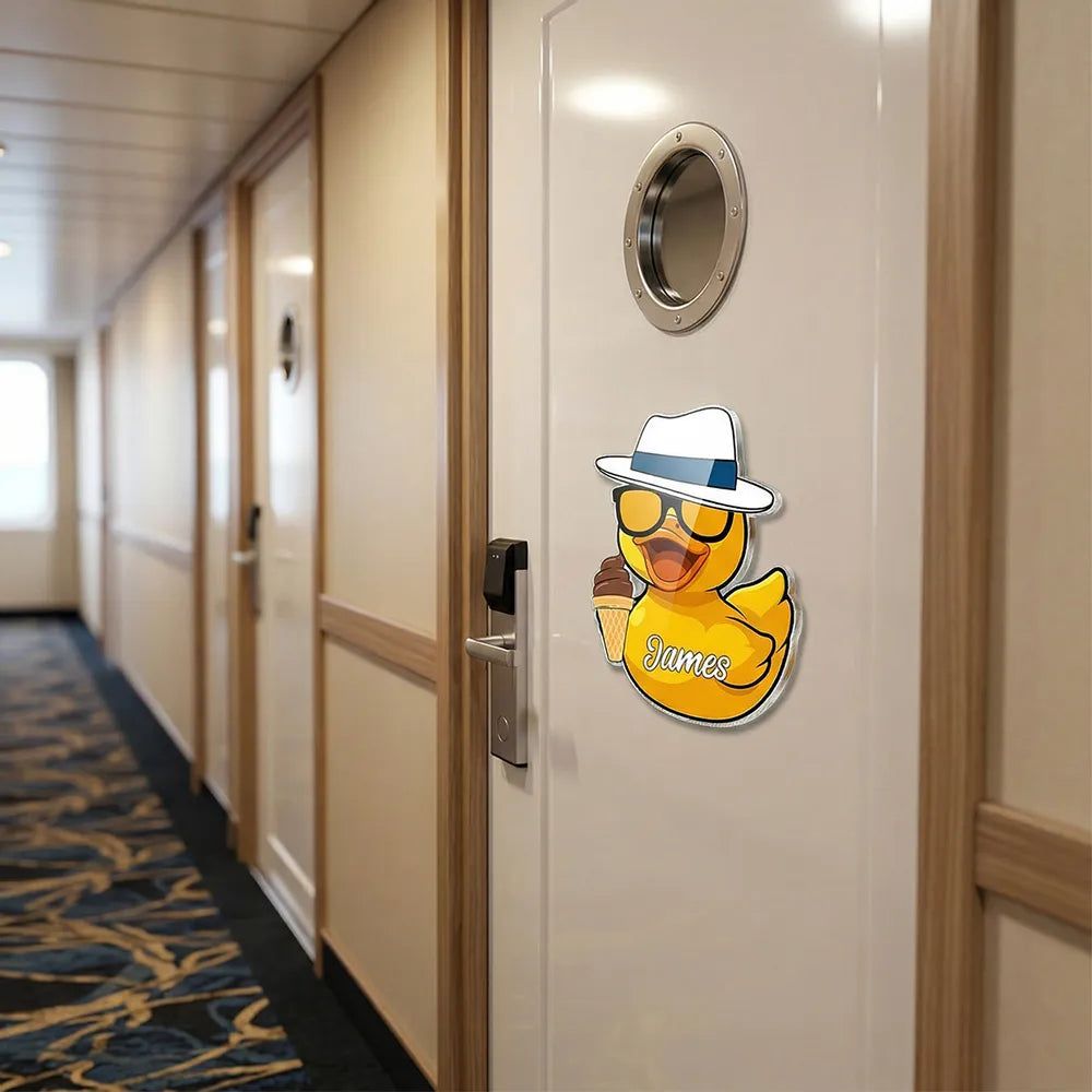 This cool duck in a white hat and shades, holding an ice cream, brings bright, playful vacation vibes. The clear print and vibrant colors pop on the door and get compliments from day one.