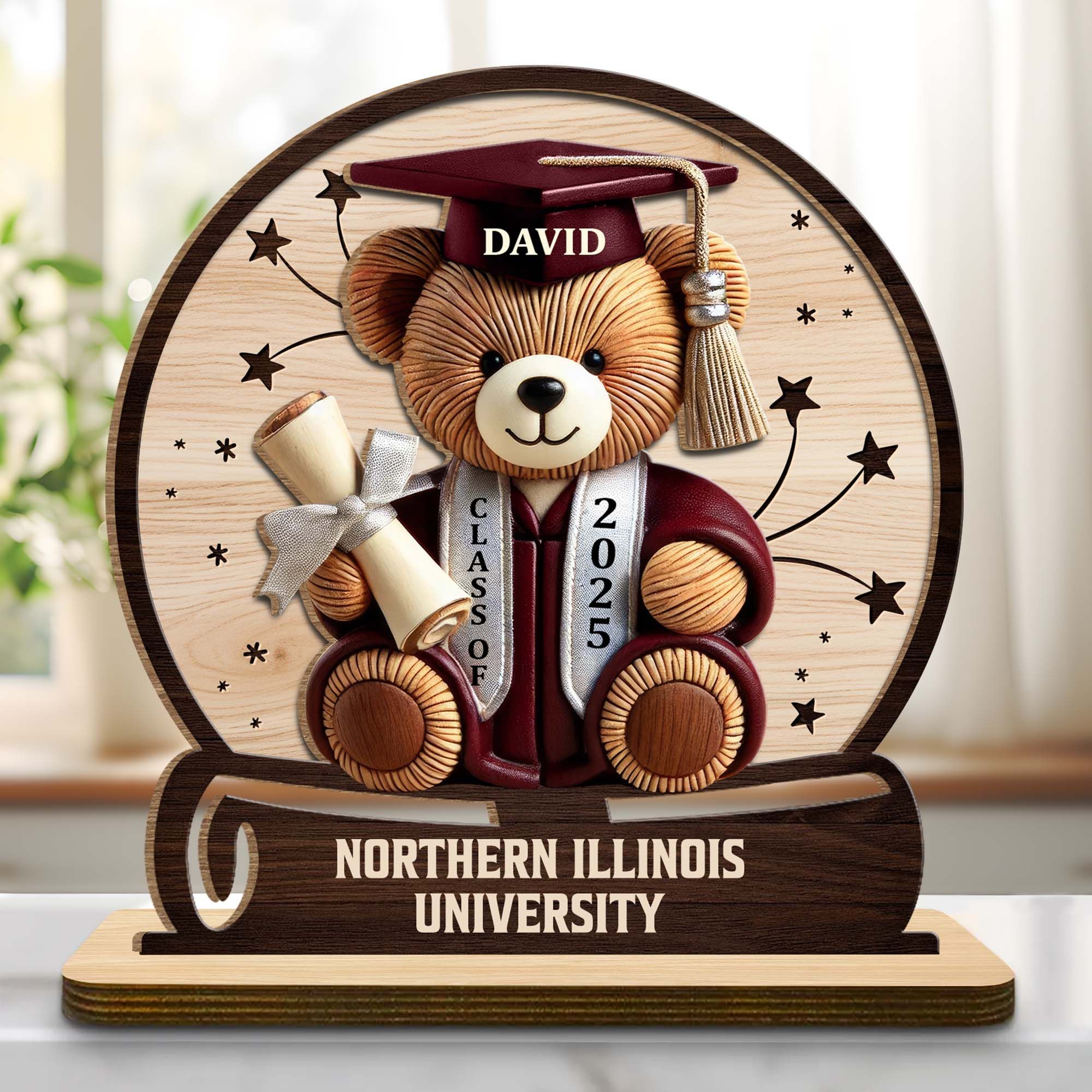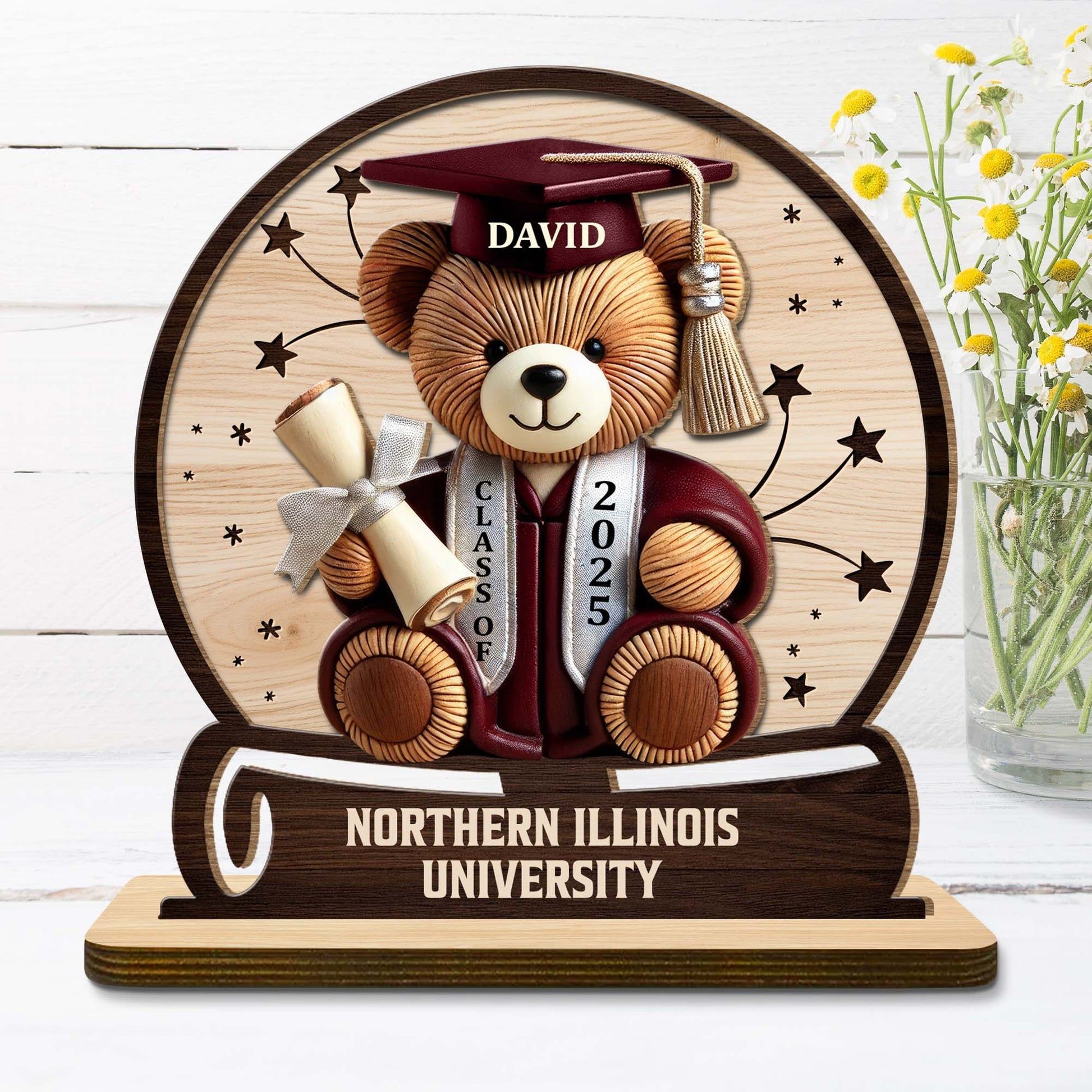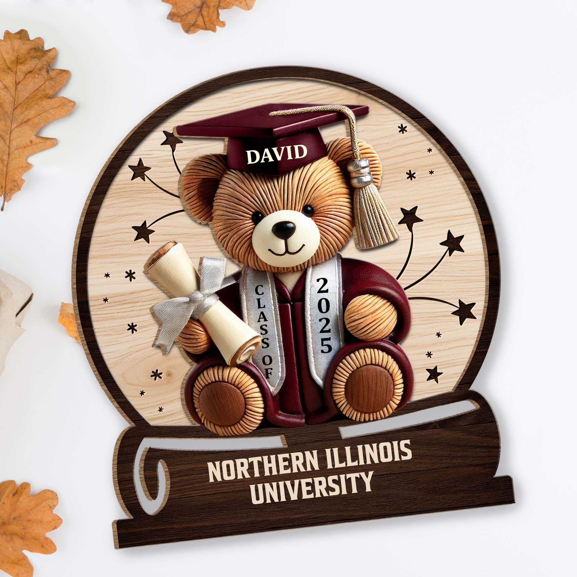Celebrate your achievements with this wooden graduation teddy bear plaque, a personalized single-layer wooden plaque with a flat base, a perfect graduation gift.