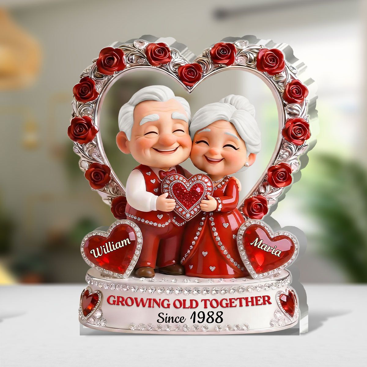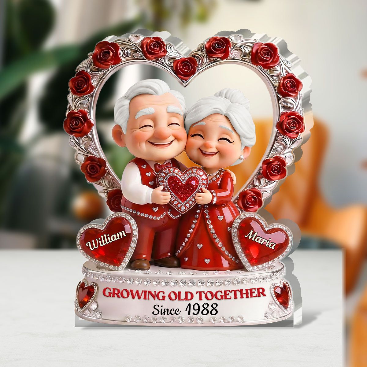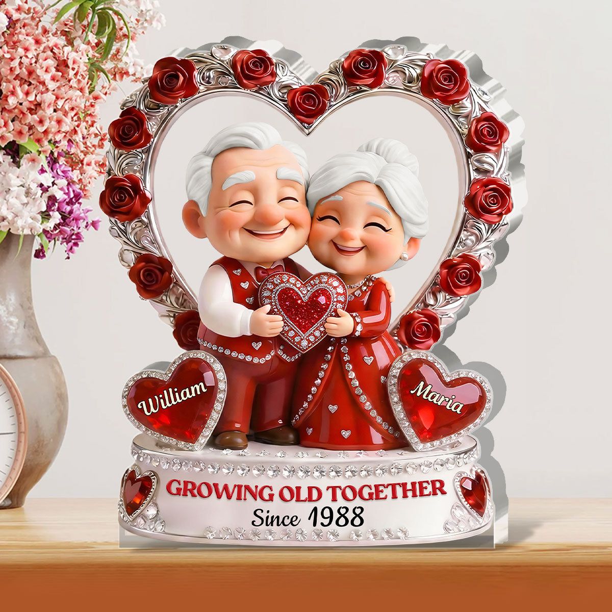 Personalized Elderly Couple Acrylic Plaque | Growing Old Together Custom Name Anniversary Keepsake