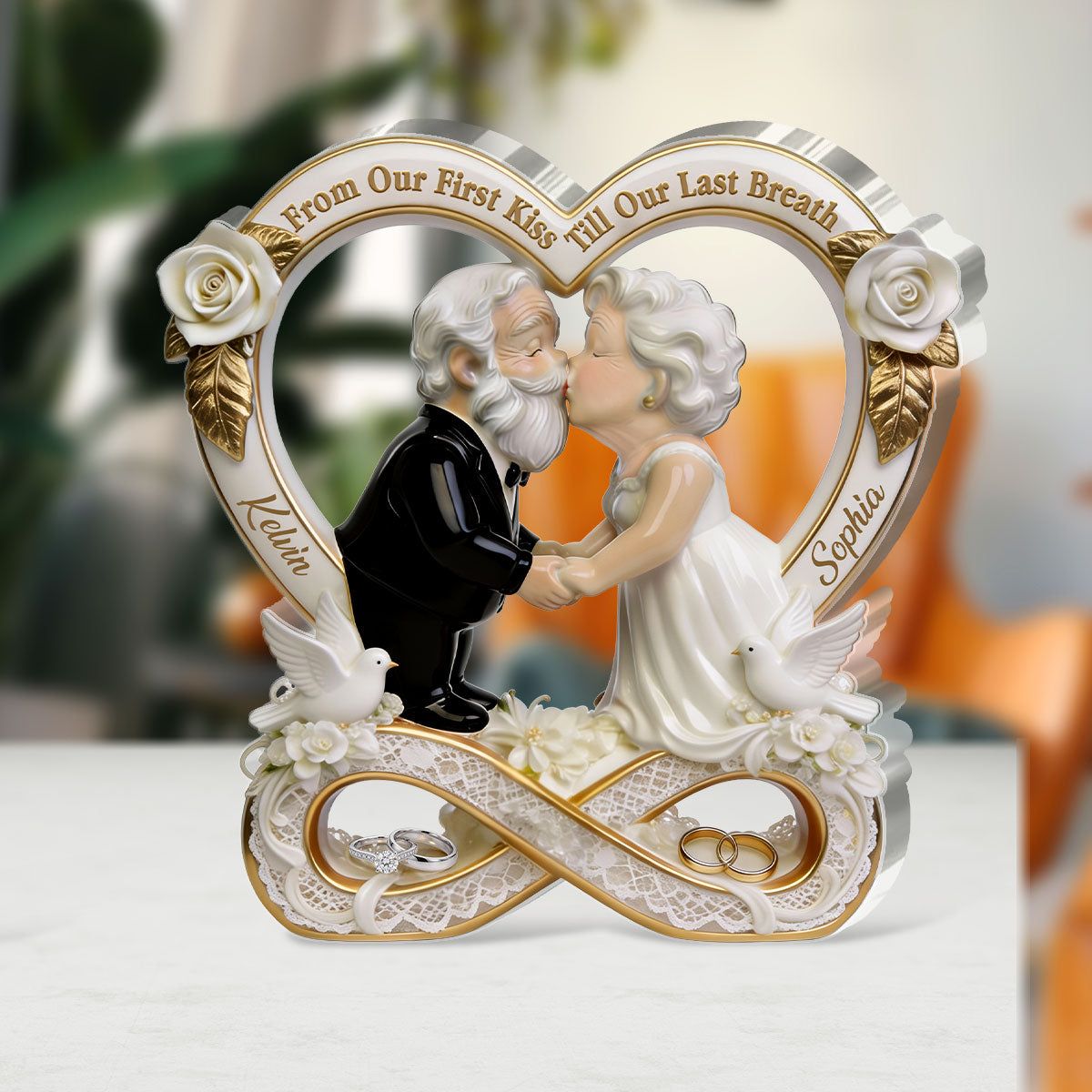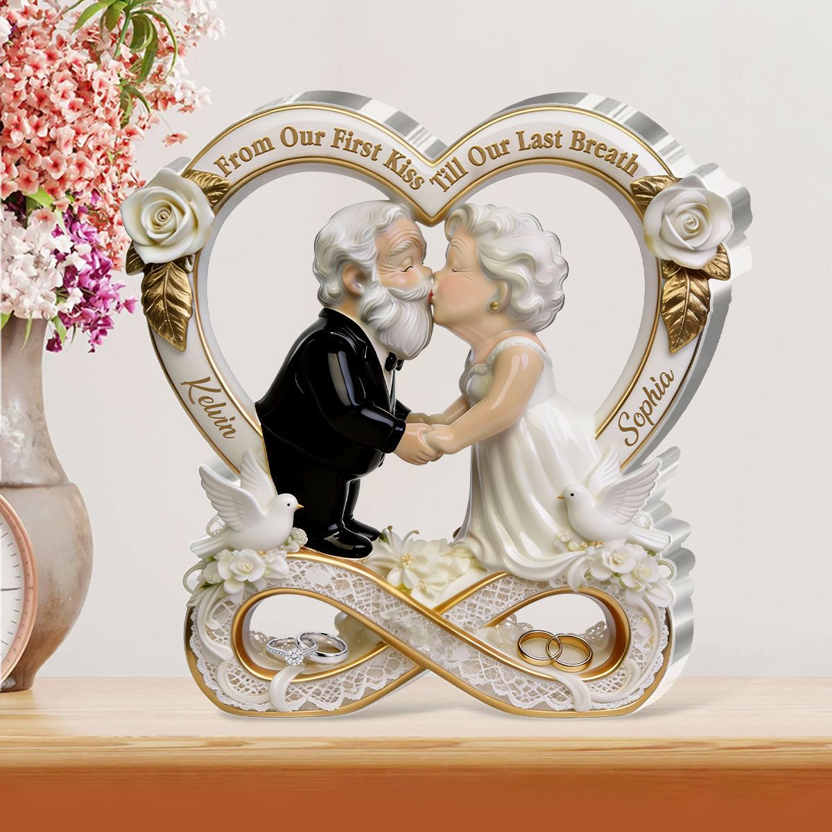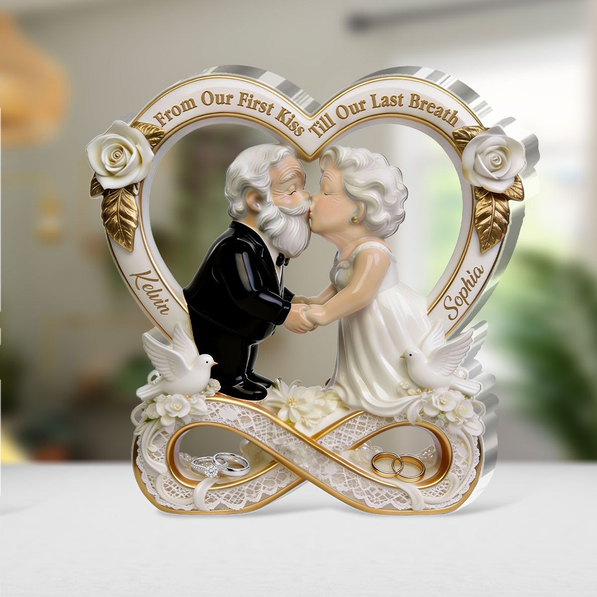 Personalized Elderly Couple Wedding Acrylic Plaque | From Our First Kiss Till Our Last Breath Infinity Heart Anniversary Keepsake
