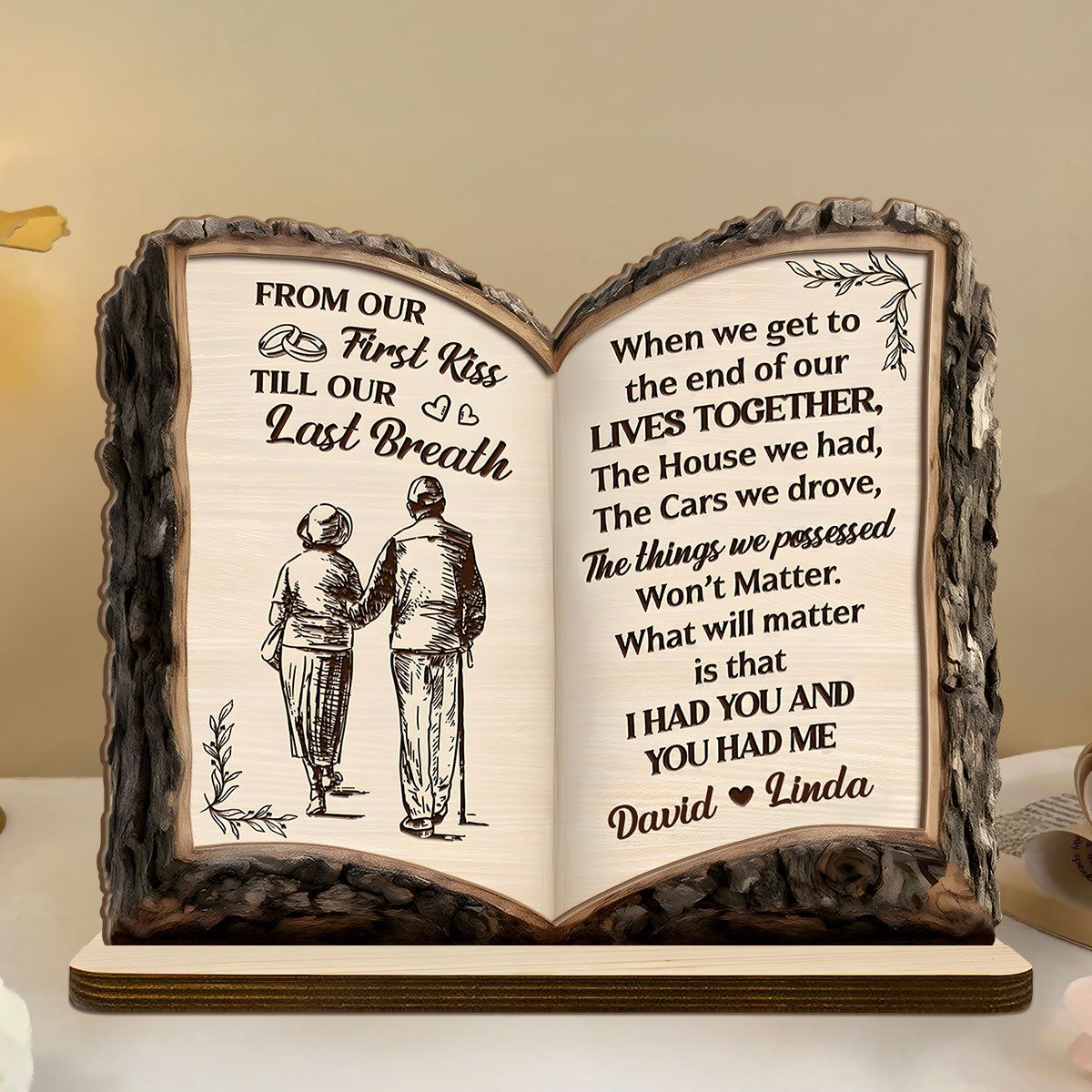 From Our First Kiss To Our Last Breath Love Journey Book - Personalized 2-Layer Wood Plaque With Flat Base