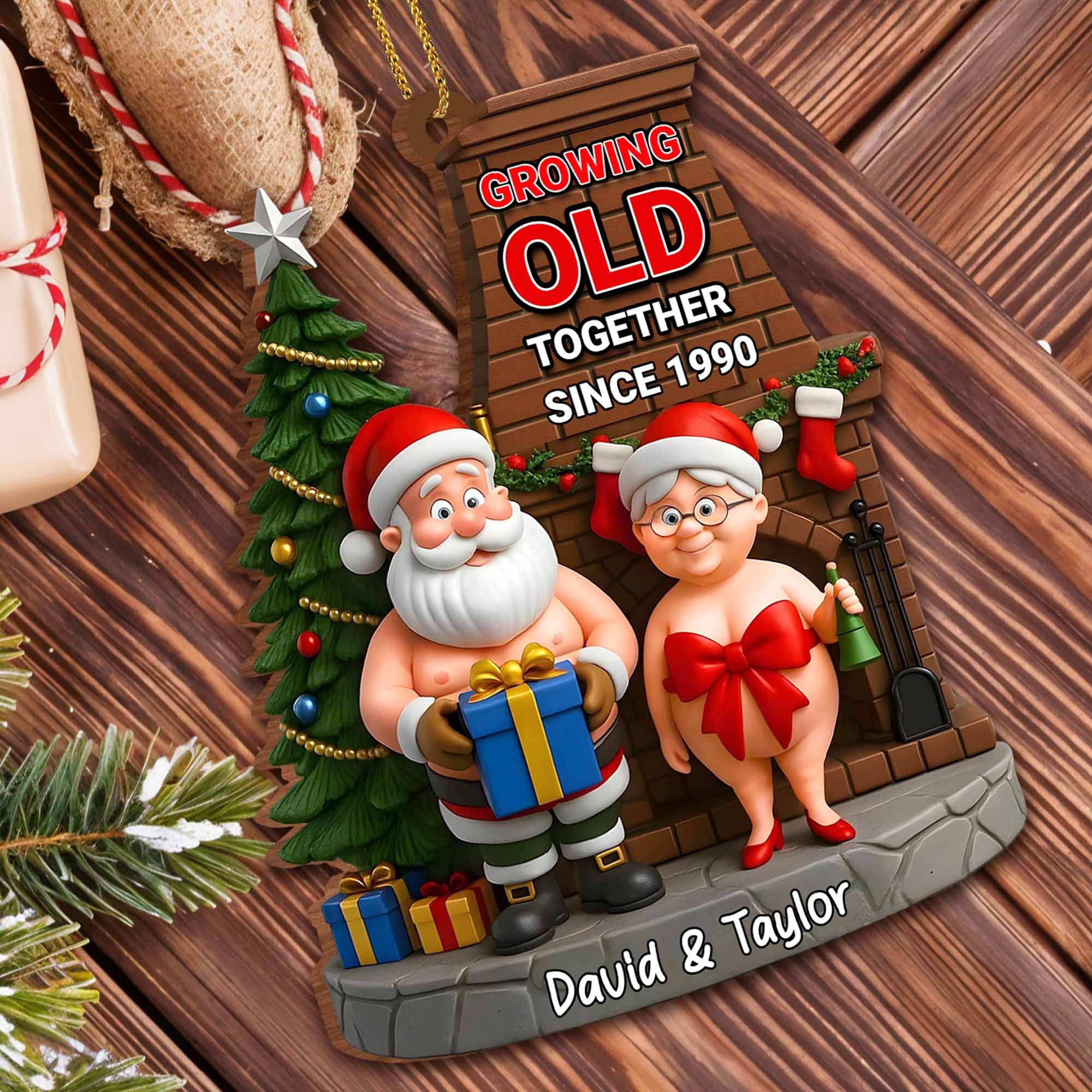 Growing Old Together With Santa And Mrs. Claus, Custom Wood Ornament, Gift For Couples