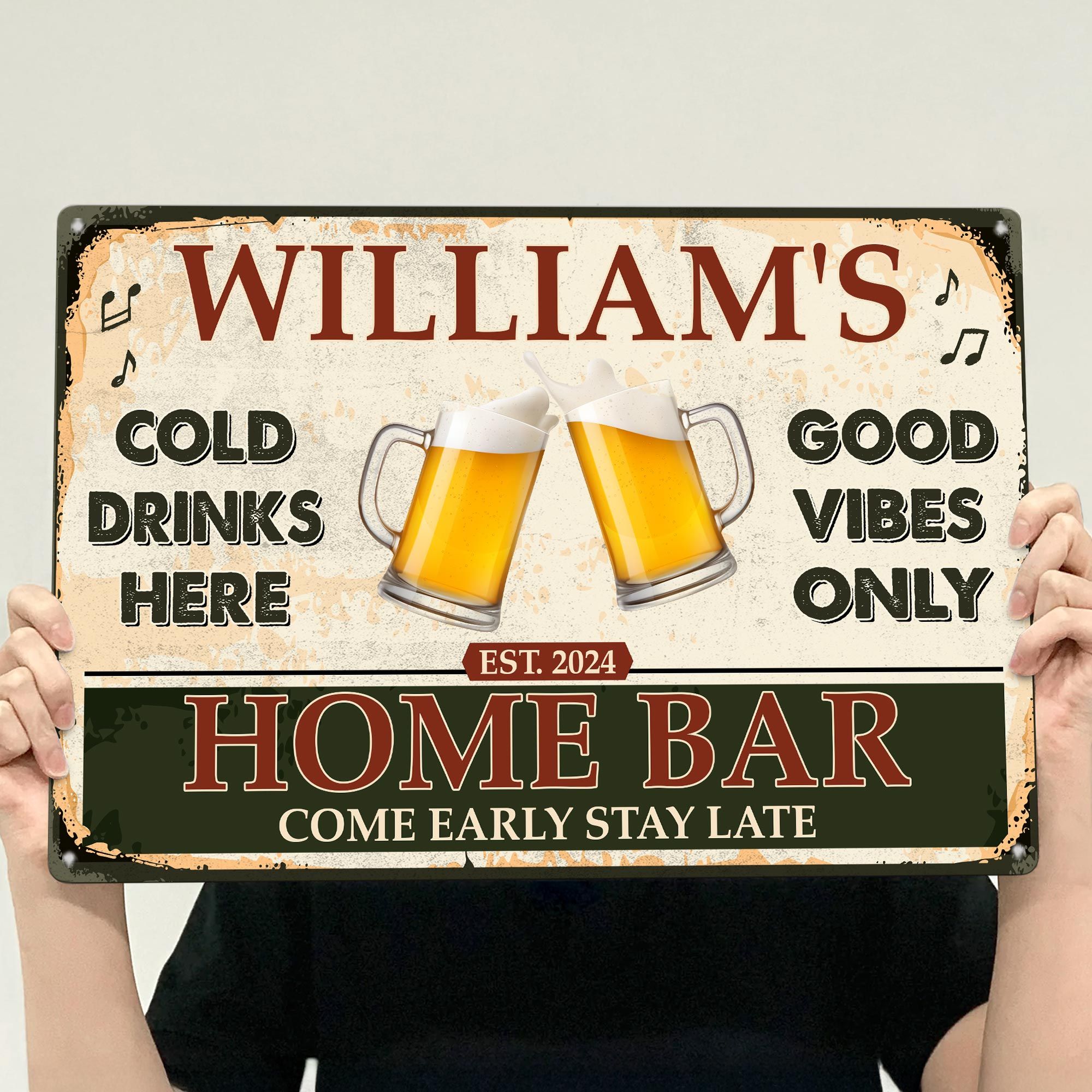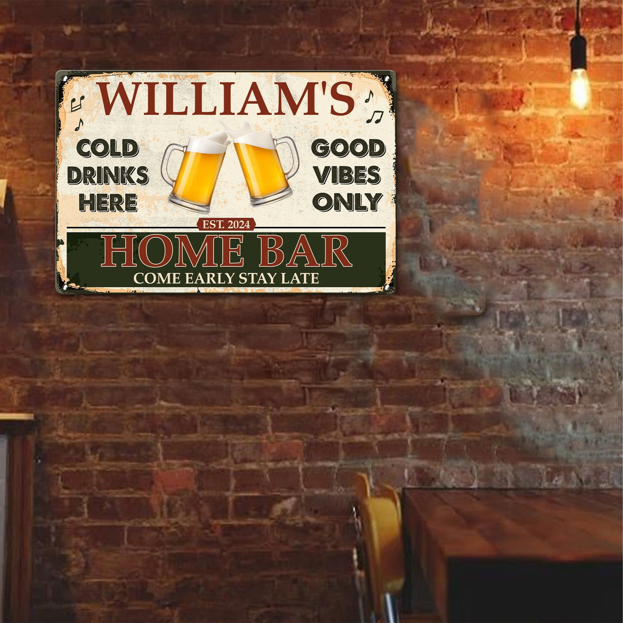Take delight in the engaging message inscribed on the sign, encouraging guests to partake and revel in the festivities without boundaries. The 'Home Bar', rich with inviting words and an inviting atmosphere, speaks of a place where time is fruitfully spent in merriment and laughter. For him, this metal sign is not just a decorative item - it's an embodiment of the warm and welcoming spirit of his home. Buy one today and embrace the perfect blend of decor and meaningful message that this personalized metal sign offers.