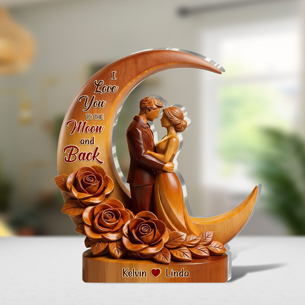 Personalized From Our First Kiss Till Our Last Breath Acrylic Plaque | Custom Name Young Couple Moon Rose Keepsake