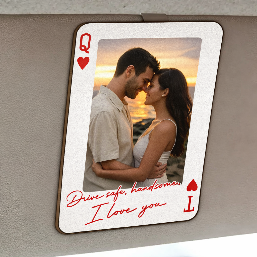 King & Queen Personalized Wooden Photo Visor Clip for Couples - Perfect Pair Custom Car Accessory