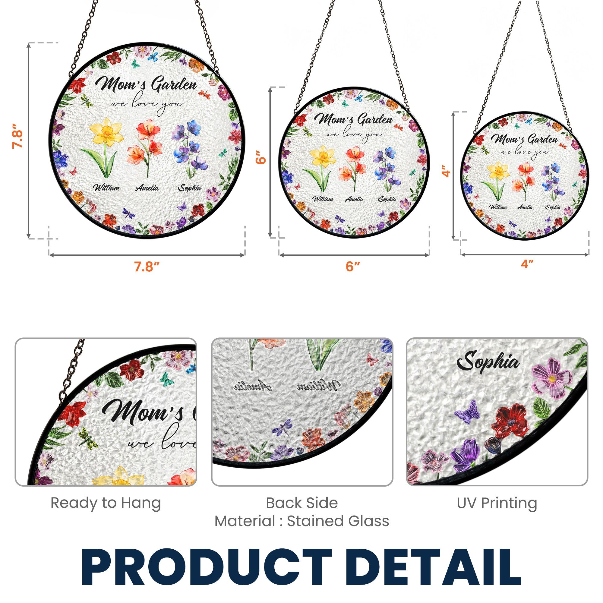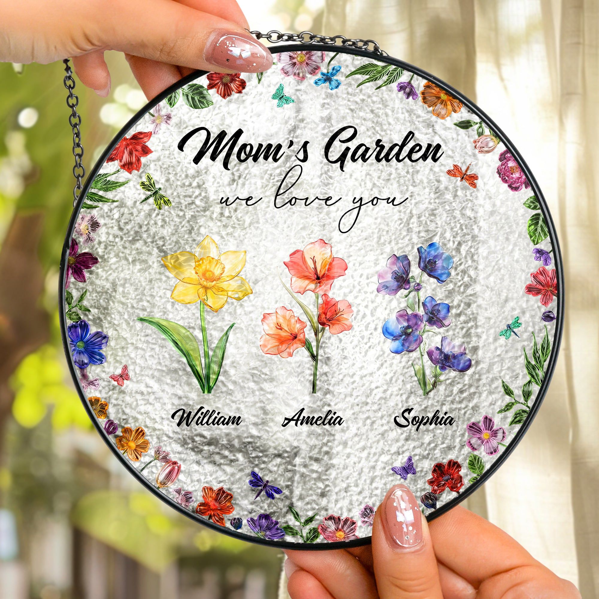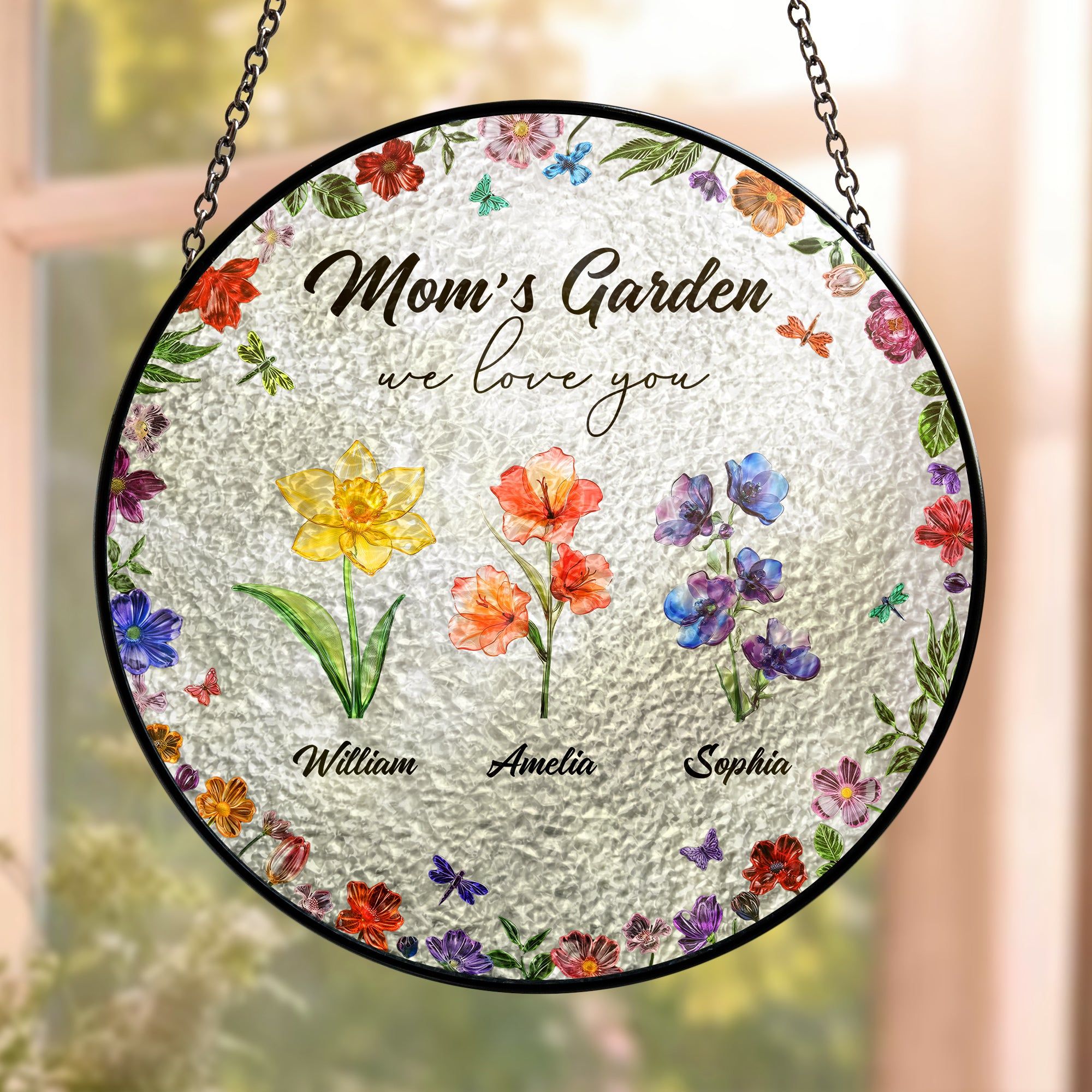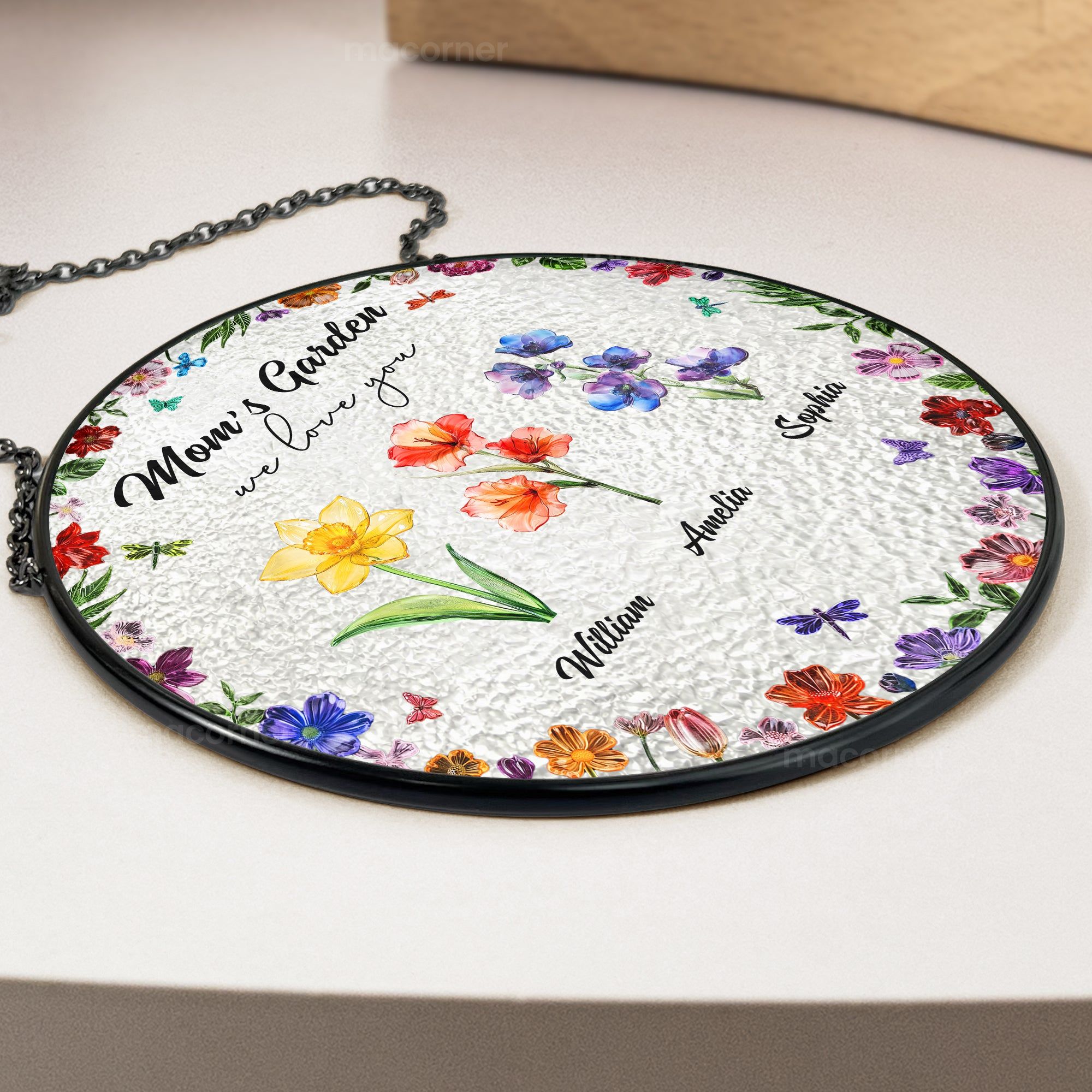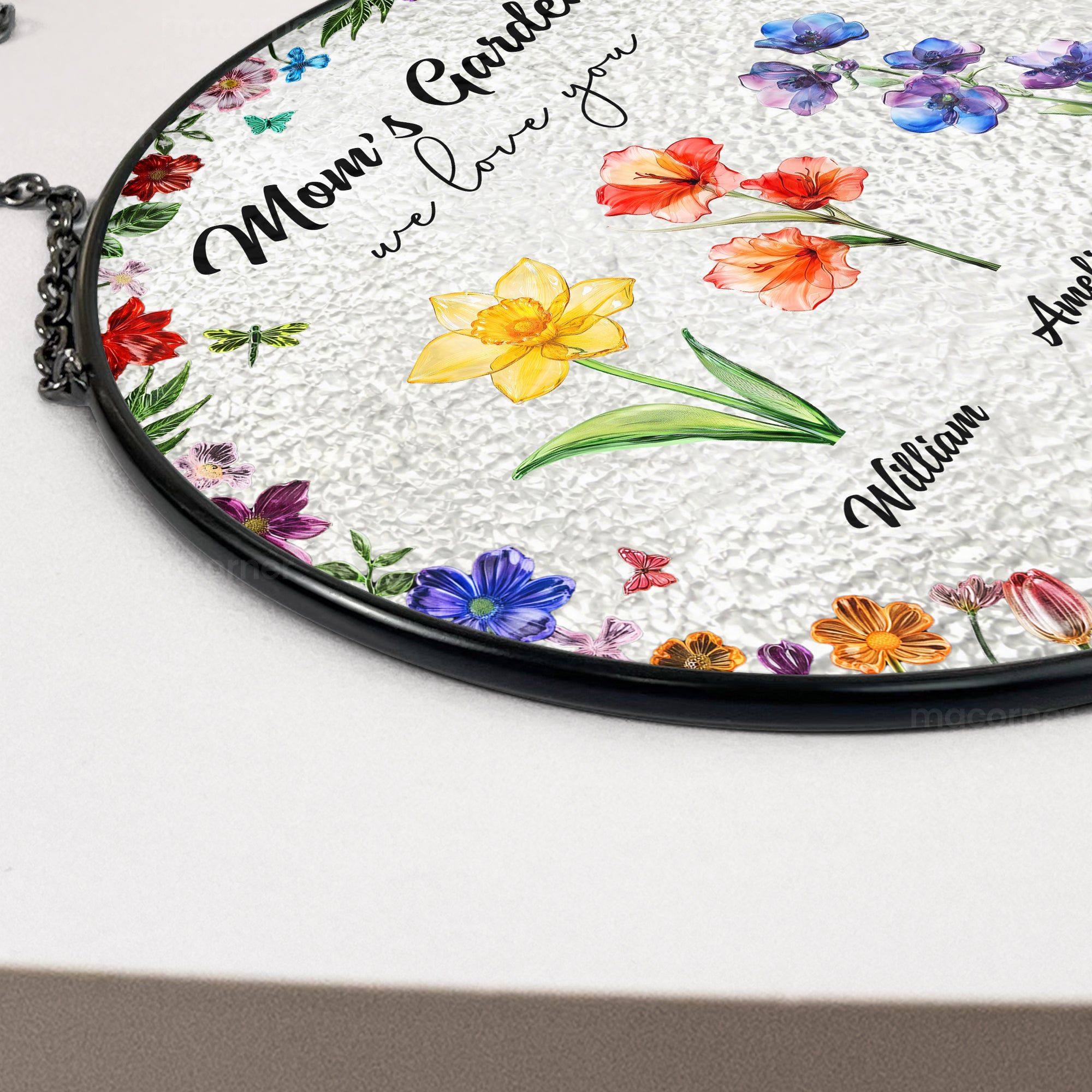 Introduce your mother to a distinctively charming piece that is bound to bring her joy, our Mom's Garden We Love You Custom Birth Flowers - Personalized Window Hanging Suncatcher. This Stained Glass Suncatcher is exquisitely designed to convey a warm and heartfelt message of familial love, making it an absolute treasure. It demonstrates the strong bond of affection between you and your mom, affirming her indispensable role in your family. Ideal for Mother's Day, birthdays, or Christmas, this suncatcher will broaden the essence of gift-giving and blend perfectly with any celebration making it perfect for your beloved mom. Its design embodies a garden theme that subtly accentuates a sentiment of love.