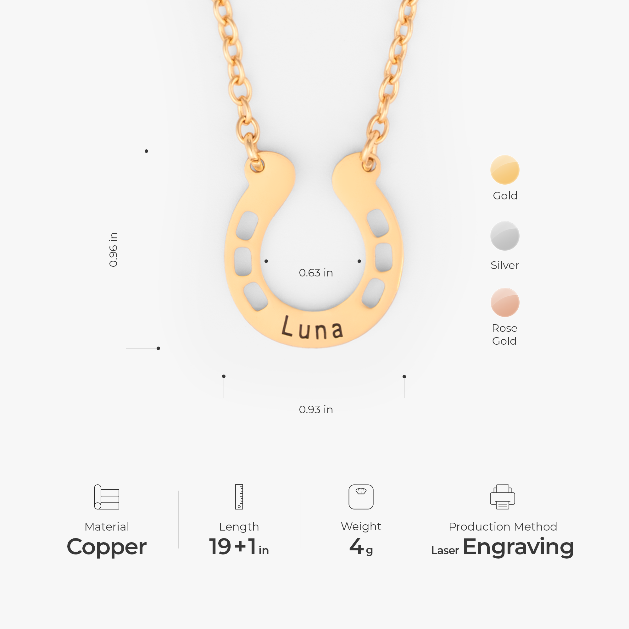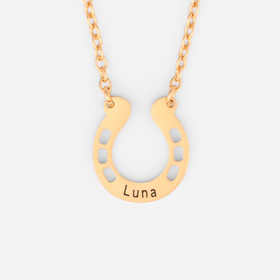 Personalized Horseshoe Name Necklace | Custom Engraved Lucky Horseshoe Pendant