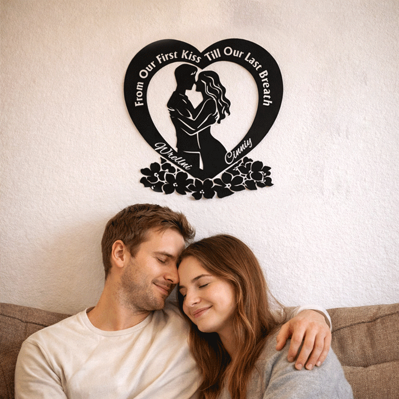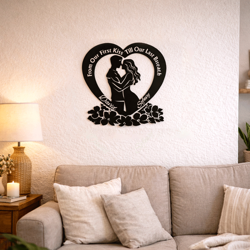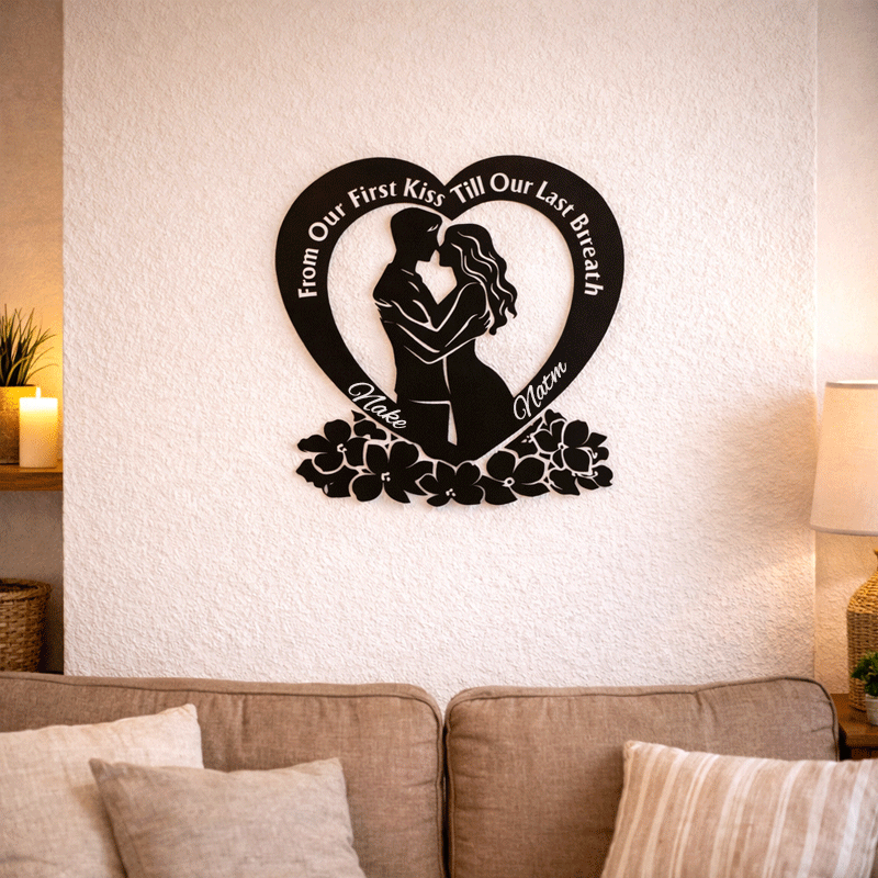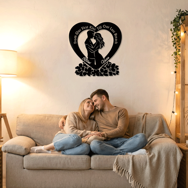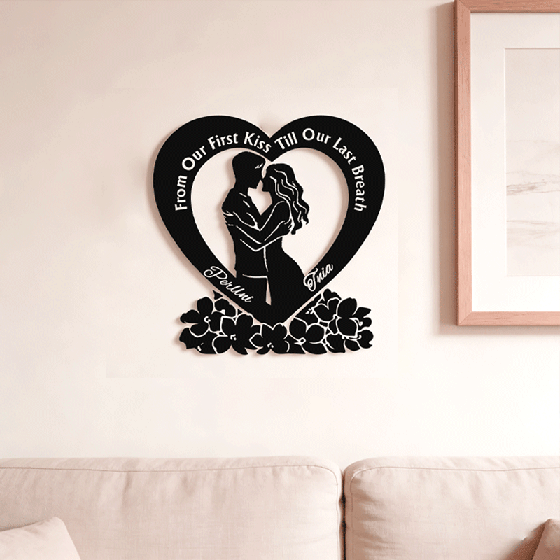 Personalized Heart Couple Metal Wall Art | From Our First Kiss Till Our Last Breath Love Decor