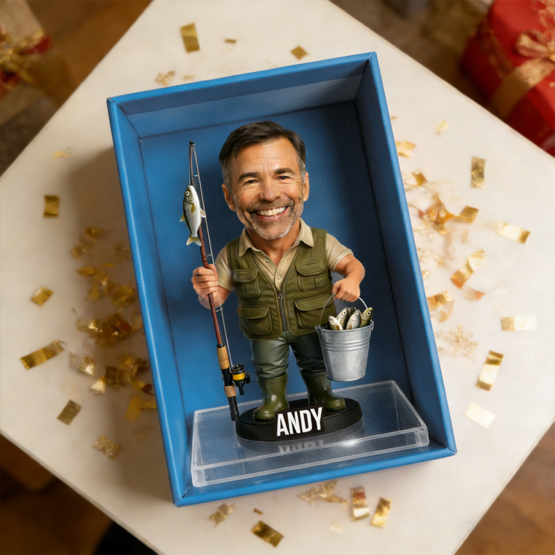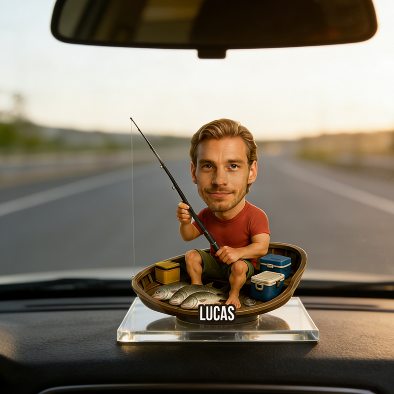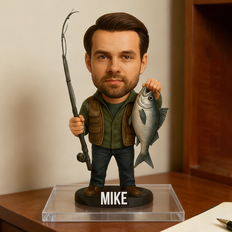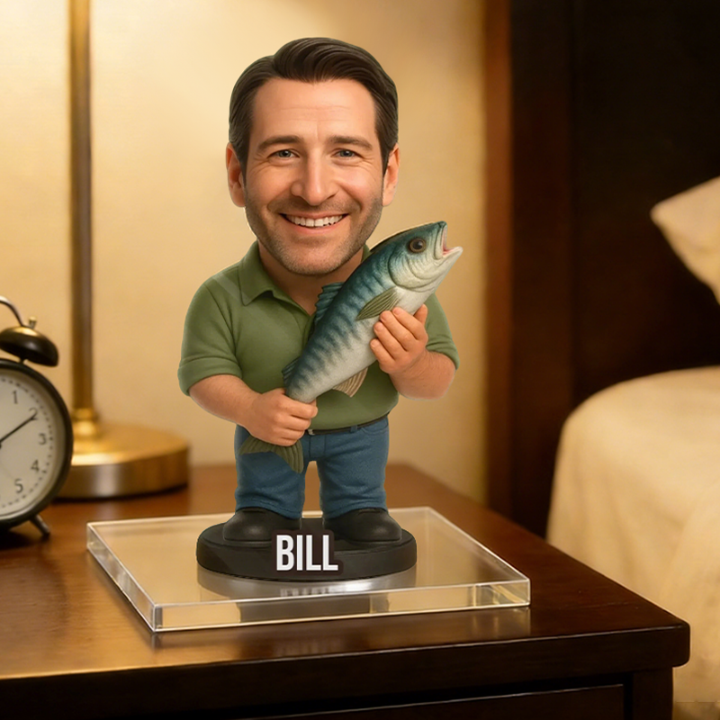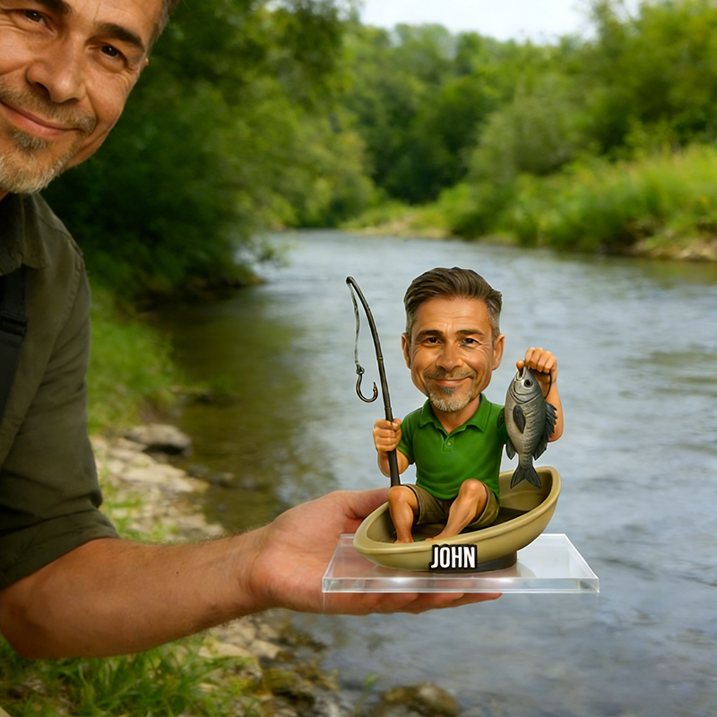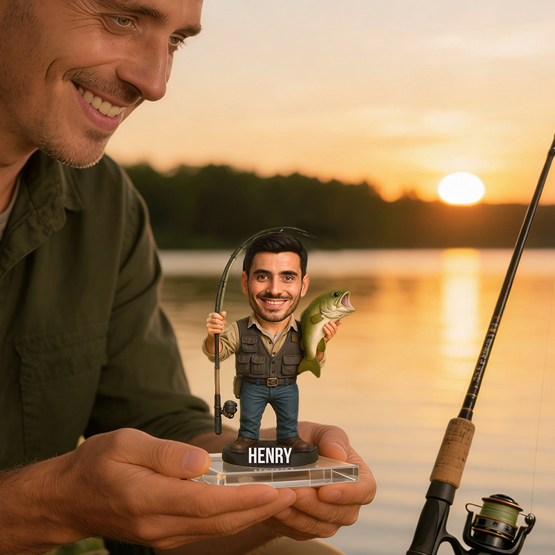 Personalized Fisherman Bobblehead Acrylic Plaque | Custom Name Fishing Lover Keepsake