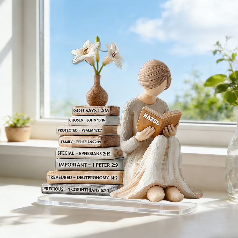 Personalized God Says I Am Reading Woman Acrylic Plaque | Custom Name & Bible Verse Keepsake