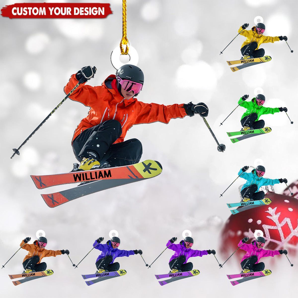 Personalized Skiing Christmas Ornaments, Gifts for Skiers and Snowboarders