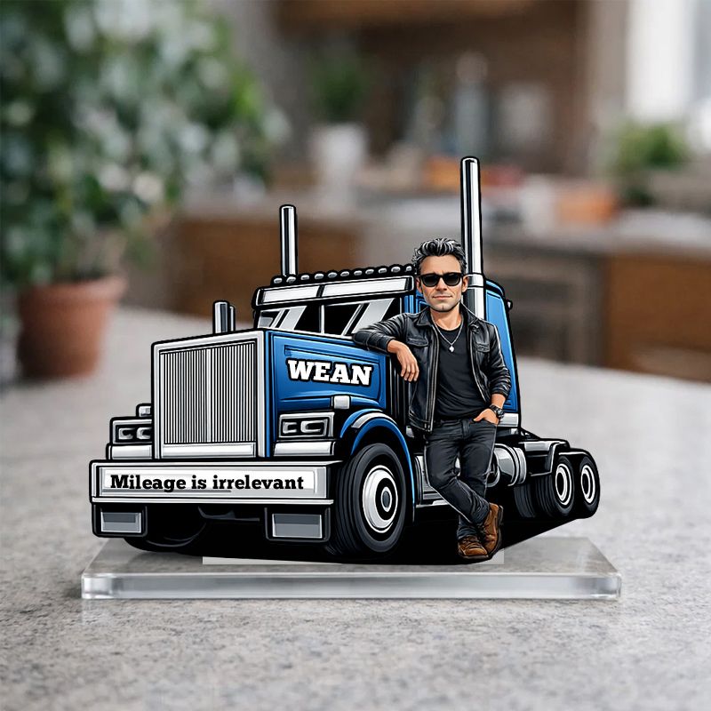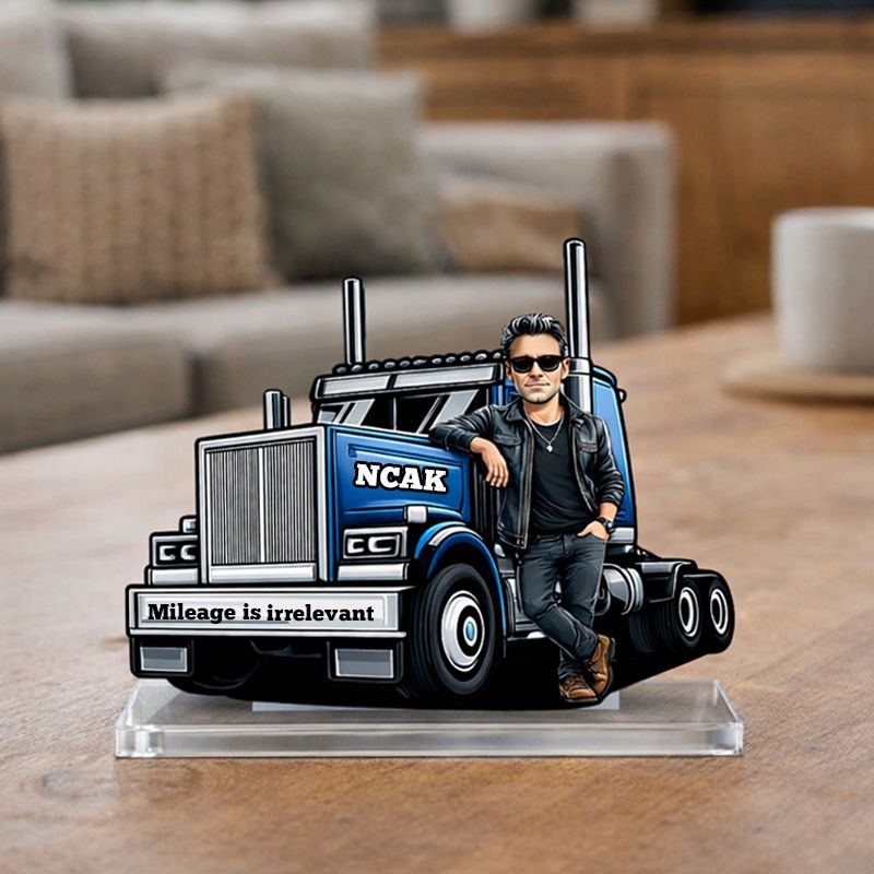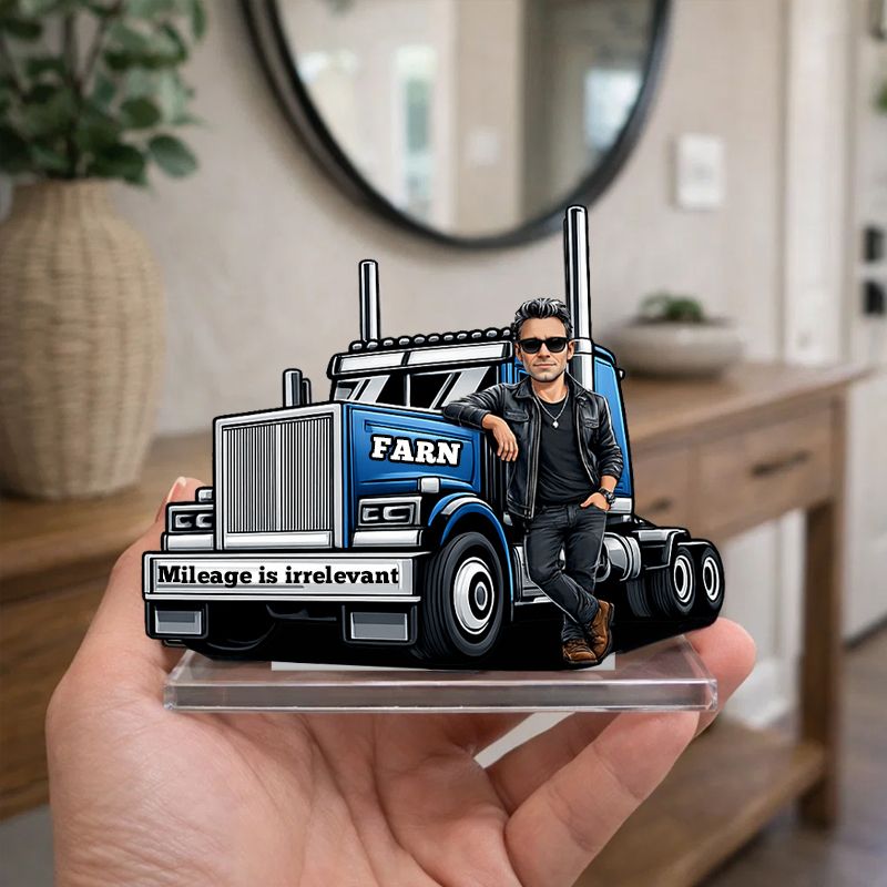 Personalized Trucker Man Acrylic Plaque | Mileage is irrelevant Custom Name Truck Lover Keepsake