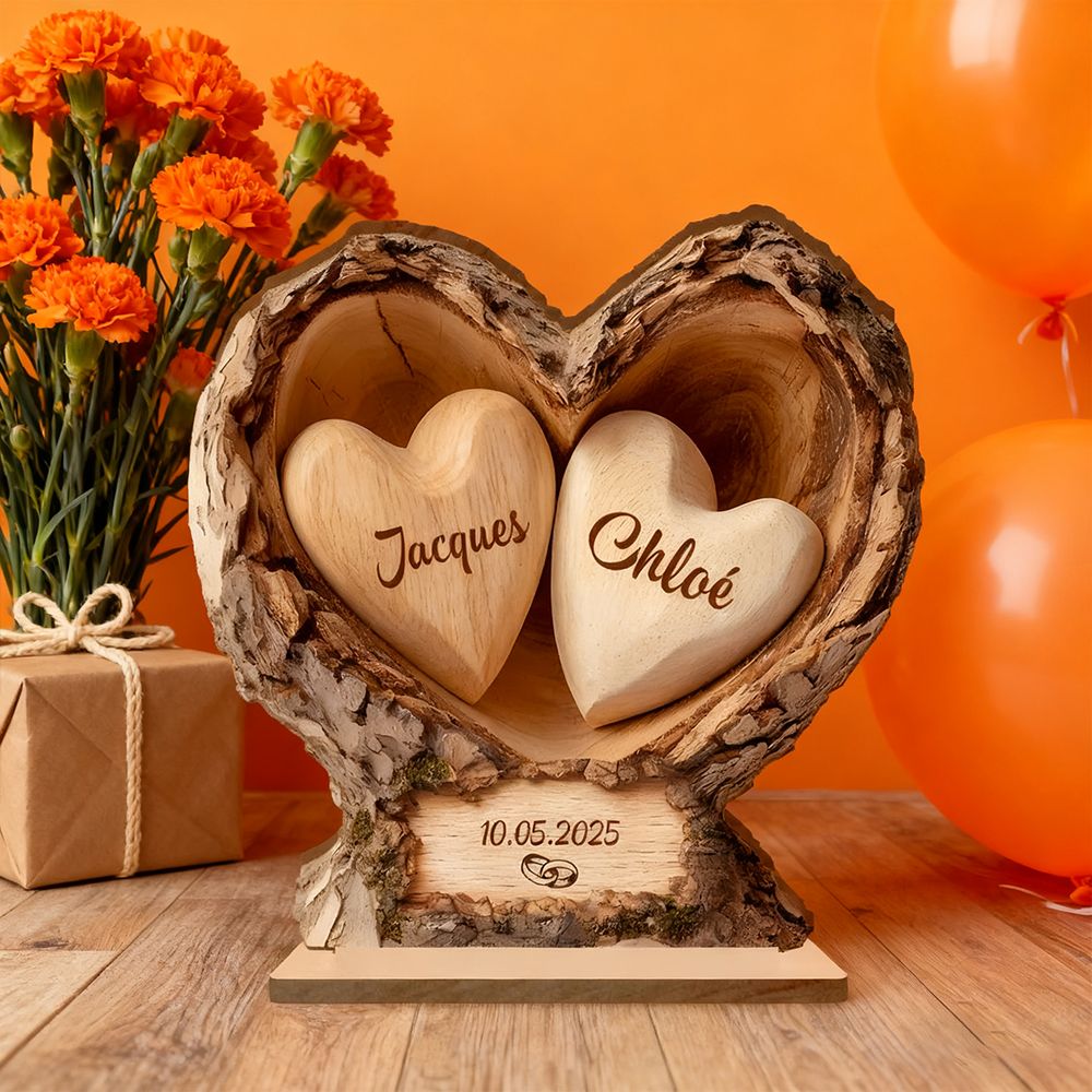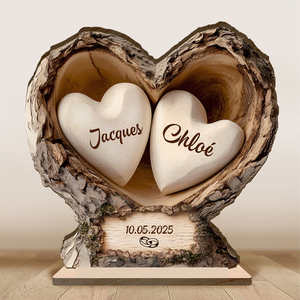 Personalized Wooden Heart-Shaped Trunk Plaque with Stable Base for Couples