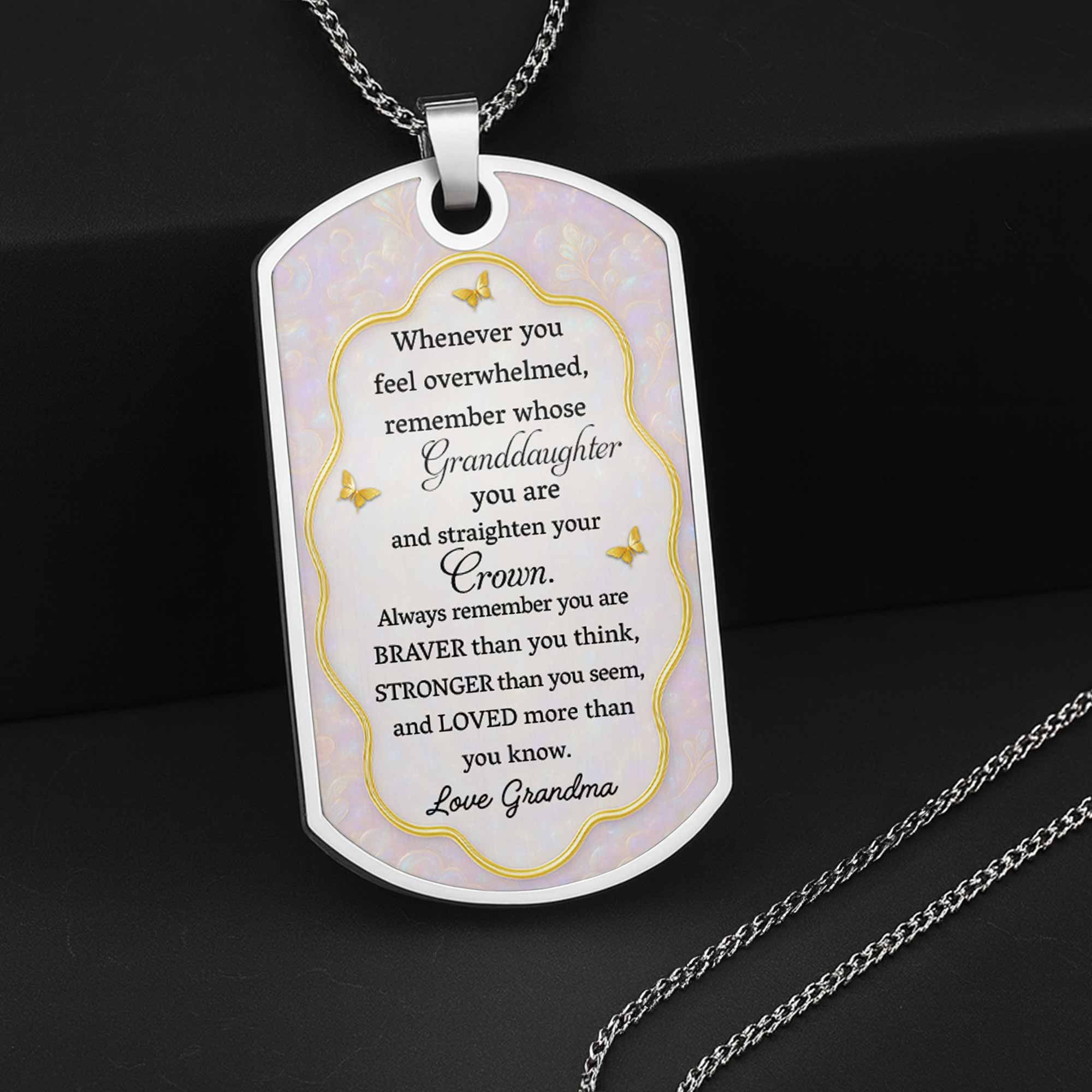 To My Granddaughter, Feel Overwhelmed, Remember Whose Granddaughter You Are - Personalized Custom Dog Tag Necklace
