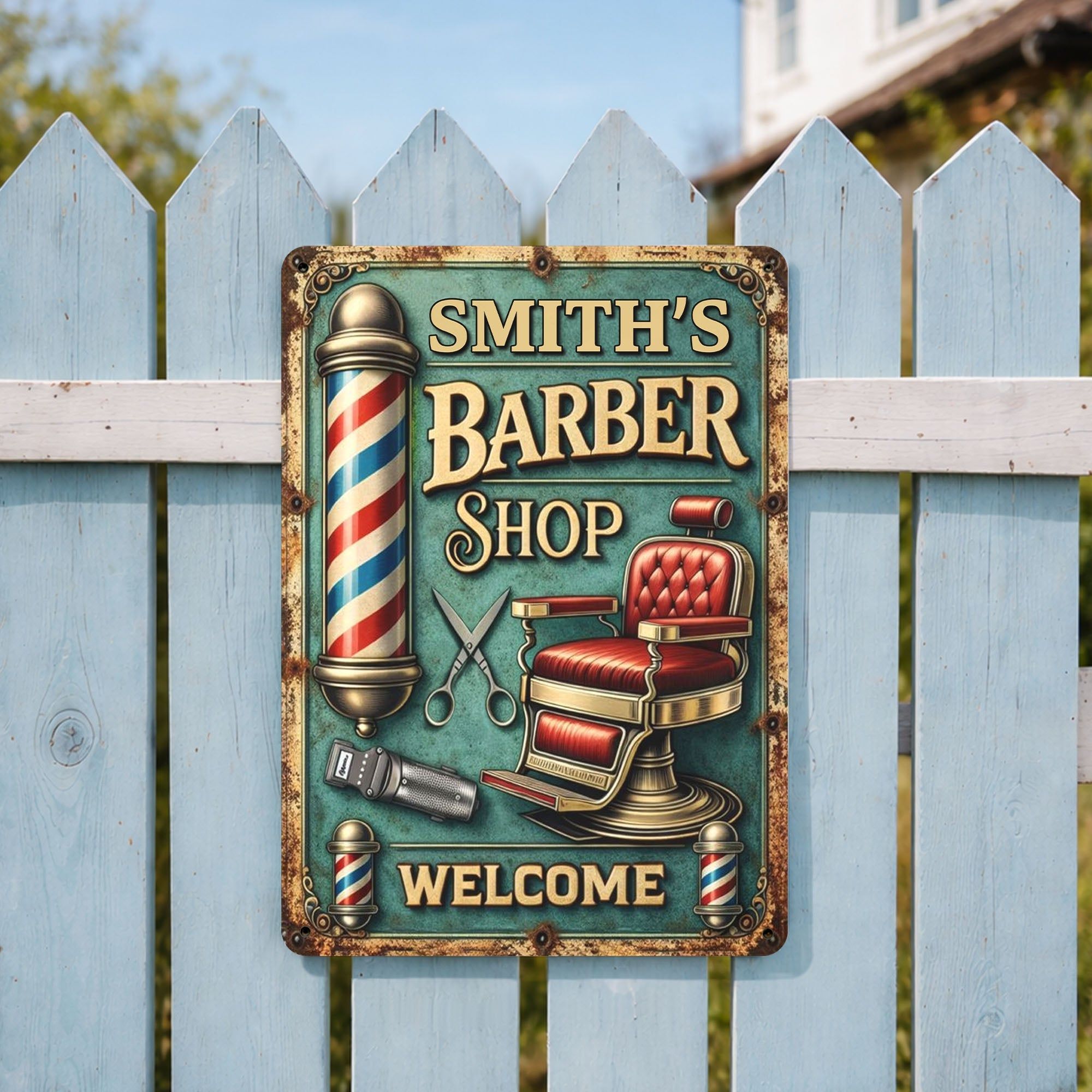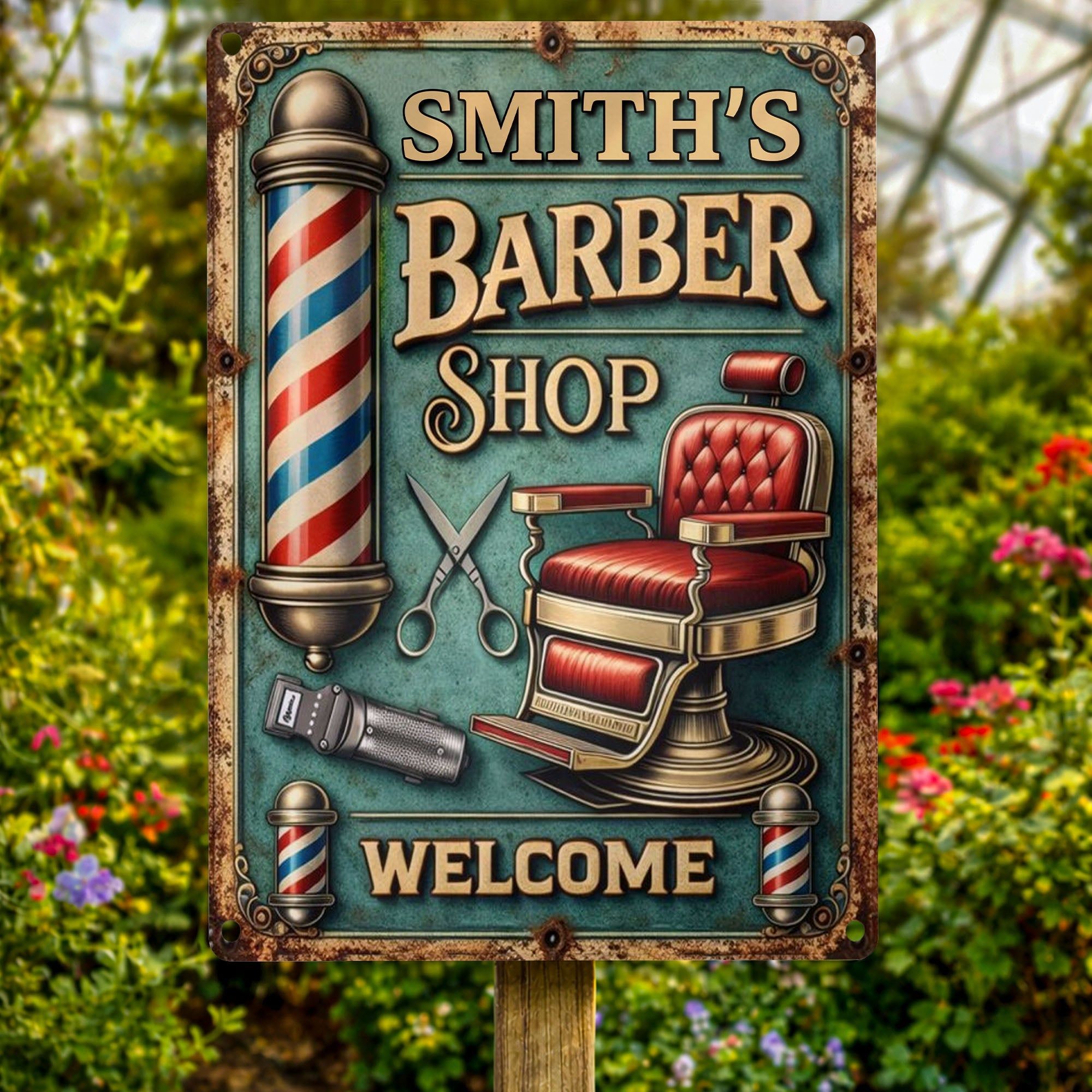 Bring classic barbershop charm to your space with this “Welcome To Our Barber Shop” Personalized Sign. Featuring iconic barber pole and chair elements, this vintage-inspired design adds character and professionalism to any shop. Customize it with your shop name or established date to create a standout décor piece that reflects your brand and passion.
