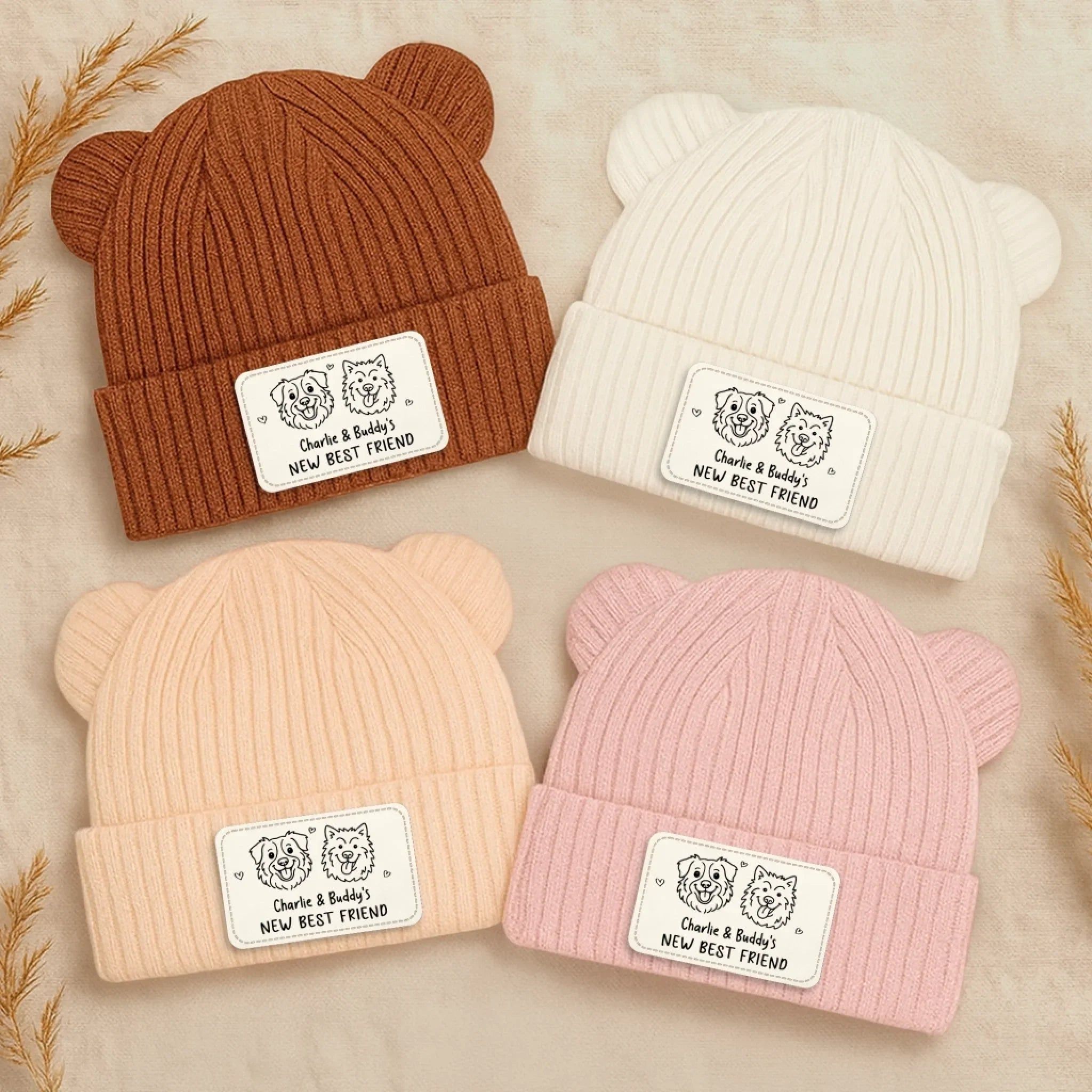 Custom Baby Beanie - Personalized Baby Shower, Gender Reveal Gifts For New Moms, New Dads, New Parents, Dog Dad And Mom