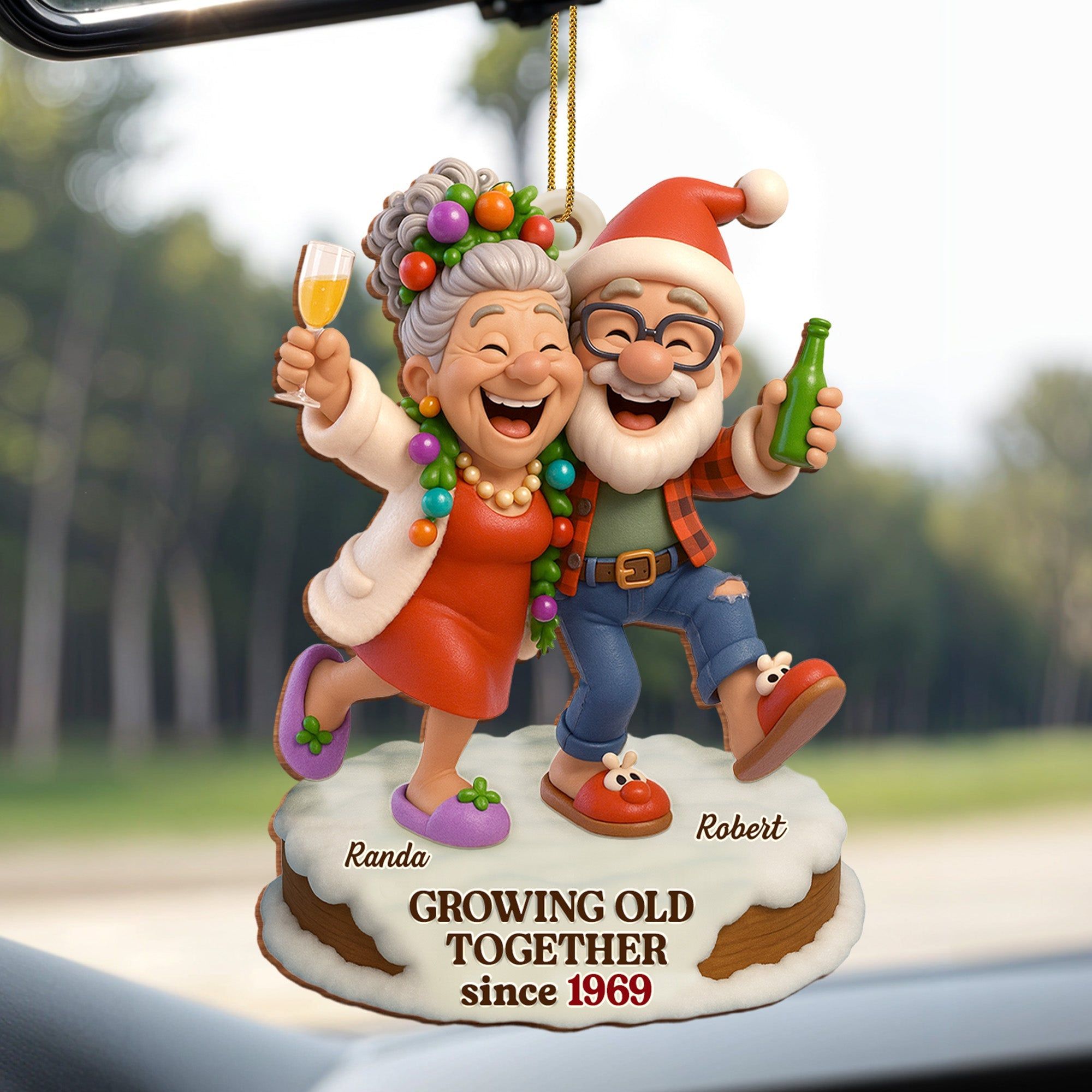 Growing Old Together Celebrate Everlasting Love With Elderly Couple, Personalized Custom Wood Ornament, Gift For Grandparents And Elderly Couples