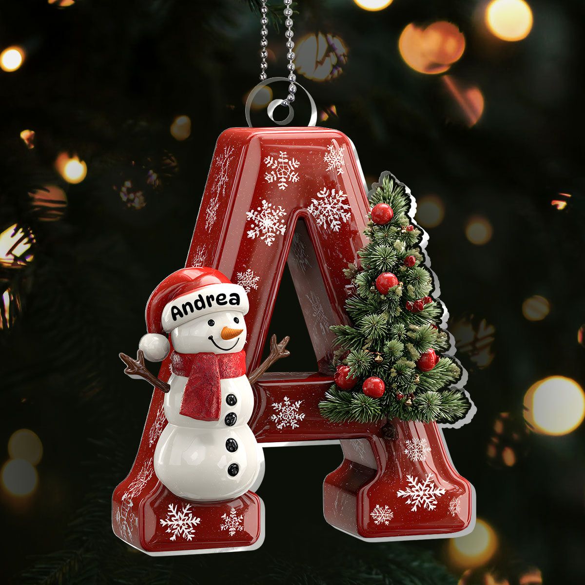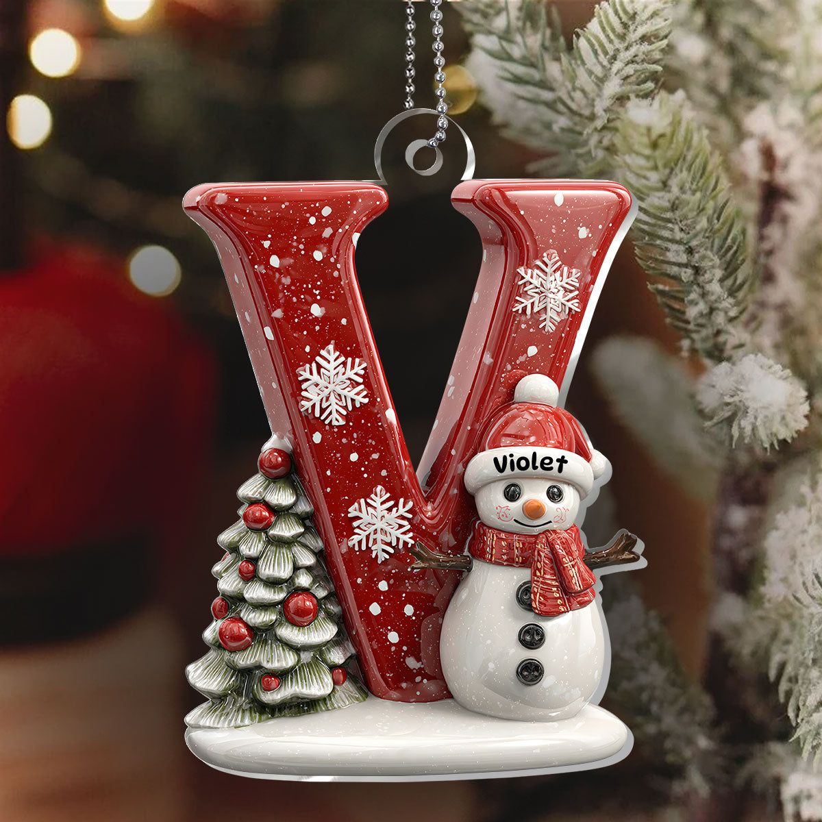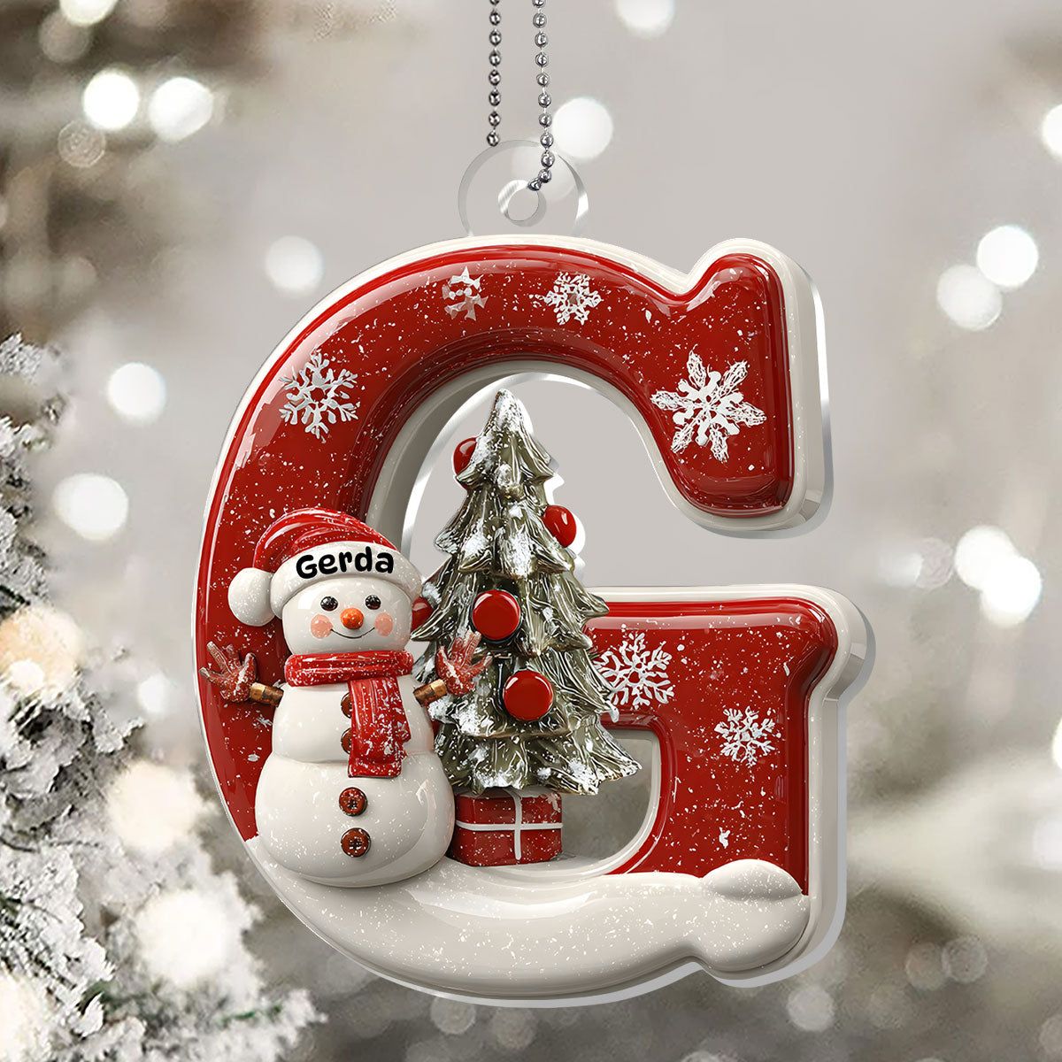Snowman Festive Christmas Letter - Personalized 1-Layer Acrylic Ornament