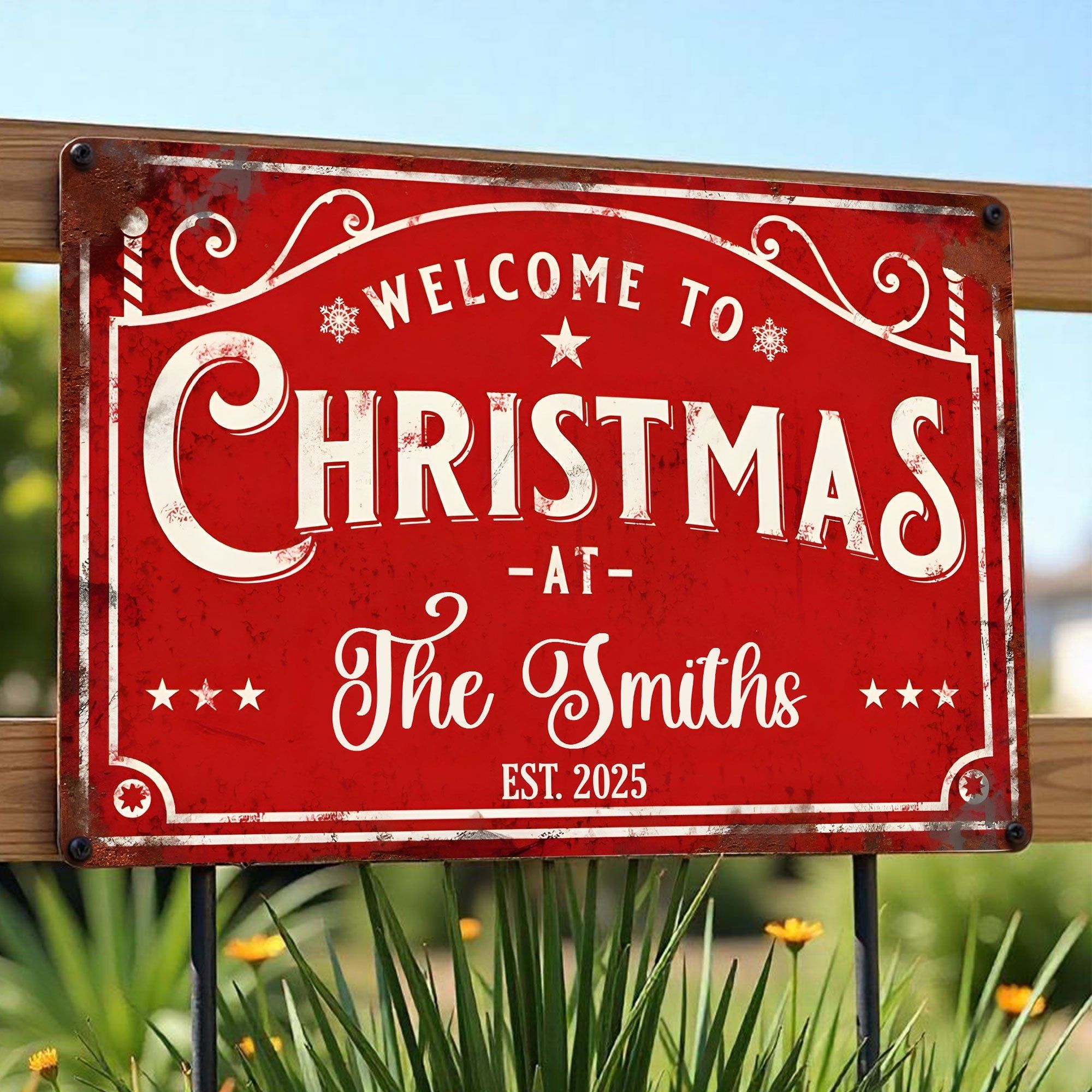 Personalized Vintage American Christmas Metal Sign – Custom Family Name & Year | Retro Holiday Decor & Heirloom Gift